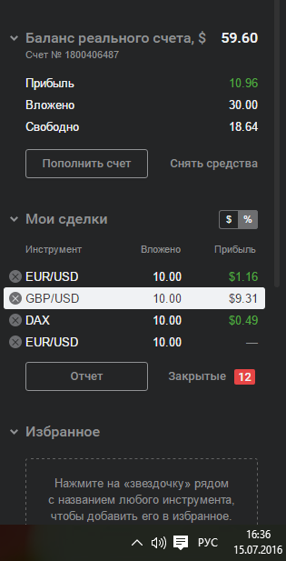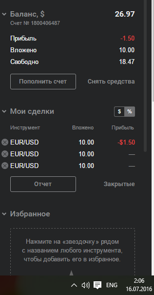 Krasa Опубликовано 15 июля, 2016 Опубликовано 15 июля, 2016 Я недавно заинтересовалась форексом. Открыла демо-счет на одной из торговых платформ, начала учиться, показалось, что получается. Как раз в это же время начался конкурс на демо-счетах (26.06 -03.07), я заняла "почетное" 24 место, тем не менее приз полагался - 50$ при условии пополнения реального счета на 5$. Пополнила на 15$, пока ждала перечисления приза, 14 потеряла...Получила свой приз, решила, что вот сейчас я как увеличу его в 100 раз) Удвоила депозит за неделю, свои призовые 50$ перевела на карту - мелочь, а приятно... В целом, соглашусь с отзывами выше - это больше на рулетку похоже, основным источником дохода не рассматриваю, личных средств инвестировать не буду. А с оставшимися на депозите 50$ потренируюсь. Что касается стратегии - технический анализ запаздывает, не использую. Фундаментальный ...ума, пожалуй, не хватает. Просто оцениваю глубину рынка на 2 сервисах, предоставляющих такую информацию (сравниваю объемы по открытым позициям с ордерами) - не панацея, конечно, но ошибаюсь реже, чем угадываю. Текущие скриншоты ниже. P.S а все же от 20-30 долларов в день дополнительного дохода не отказалась бы. День закончился печально - на счету 27$, жаль.
