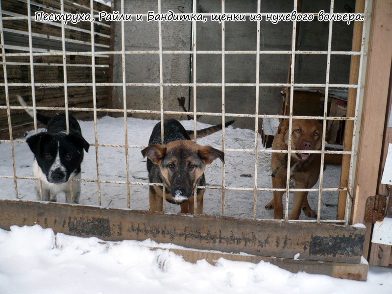 Keeley Опубликовано 28 ноября, 2011 Опубликовано 28 ноября, 2011 (изменено) Пират все ждет своего хозяина. Очень похудел - вроде проблем нет, но кушает плохо. Возможно, привык к своей домашней диете. Явно не цепной, а жил в квартире - на поводке послушный, всегда ждет, когда его выведут на улицу, на месте не пачкает. Умничка просто, скорей бы найти ему хозяина. В приют вернулась Красотка (ее выпустили несколько месяцев назад) и обосновалась в кресле в коридоре - чувствует себя как дома И немного вольерной молодежи. Стая Бандитки теперь живет в 9 вольере. Бандитка и Райли растут не по дням - оба смышленные и шустрые. Райли поправился и похорошел, бегает за мной хвостиком, точнее пухлым хвостищем. Две сестрички и их подружка из седьмого вольера гуляли впервые за долгое время. С ними все носилась и наша Смоки. Она теперь стала просто красавица, не узнать. В нулевом вольере живут в основном неконтактные трусишки, с ними еще нужно много работать. Чуть что - сразу в будку, позировали только свежеподсаженная к ним девочка (контактная) и Волчица (после того, как я ее поймала и немного потискала, она решила, что при людях в будку прятаться не обязательно, можно и на улице посидеть) Малыши из щенятника Изменено 28 ноября, 2011 пользователем Keeley