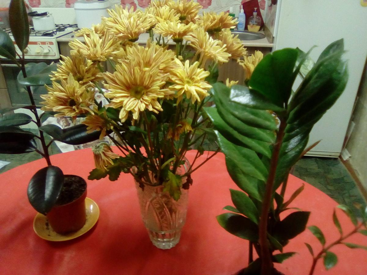 FOX Опубликовано 7 сентября, 2016 Опубликовано 7 сентября, 2016 вот мой букет хризантем забирала 2.09.16 последней, фотографировала вчера (один цветочек подвял, его видно, остальные бодро стоят, симпатичные и такой осенней расцветочки) когда забирала были слегка "запарены", я их обрезала см 10-15 и почистила от листьев (те, что в воде), поставила в воду сначала теплую, потом холодную - все цветочки сразу расправились, красивый букет, спасибо!
