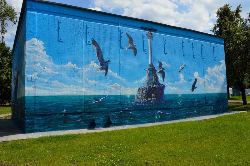 А в Москве тем временем вот так облагораживают. То ли ТЭЦ, то ли ещё что.Севастопольский проспект вл.17Ас1. Вот бы у нас так. Мечты-мечты. (Это ж денег стоит!)Я бы, например, на заборе по Юбилейной ерунду закрасила и на всём объёме сделала коллаж по значимым вехам истории города. Вообще на исторические темы города и края бы расписать всё.