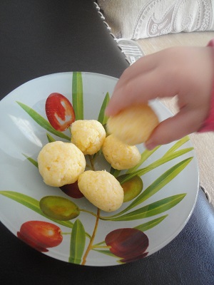 Ласка Опубликовано 10 мая, 2015 Опубликовано 10 мая, 2015 О мы кашу тоже не едим вообще, расскажите, что у вас за церемония, и что за кашу добавляете в смесь. Про кашу... Иногда делаю из каши конфеты))) Это прямо сегодня: сварила кукурузную "мамалыгу" мы с сыном любим, а доченька нет. Пока она спала, каша остыла и стала крепко густой. Я из неё шарики накатала, хотела обвалять в кокосовой стружке и присыпать сахаром или пудрой... не успела, как видите, просто каши в шариках хватило, чтобы отобрать тарелку и начать есть))) Ещё такие номера прокатывают с пшённой кашей, можно и рисовую так сделать, из того, что осталось на утро, например... и ещё шарики или лепёшки можно заливать густым киселём. Про соску, тоже ходили с ней неразлучно буквально ещё пару месяцев назад. Первое что надо сделать - выкинуть их нафиг (чисто для себя, чтобы потом не смалодушничать и не сдаться под вопли чада)))) Для предотвращения истерик перед сном, угуливали дочку так, что она вырубалась за минуту (ну, и мы вместе с ней). Через три дня про соску не вспоминал никто!!!