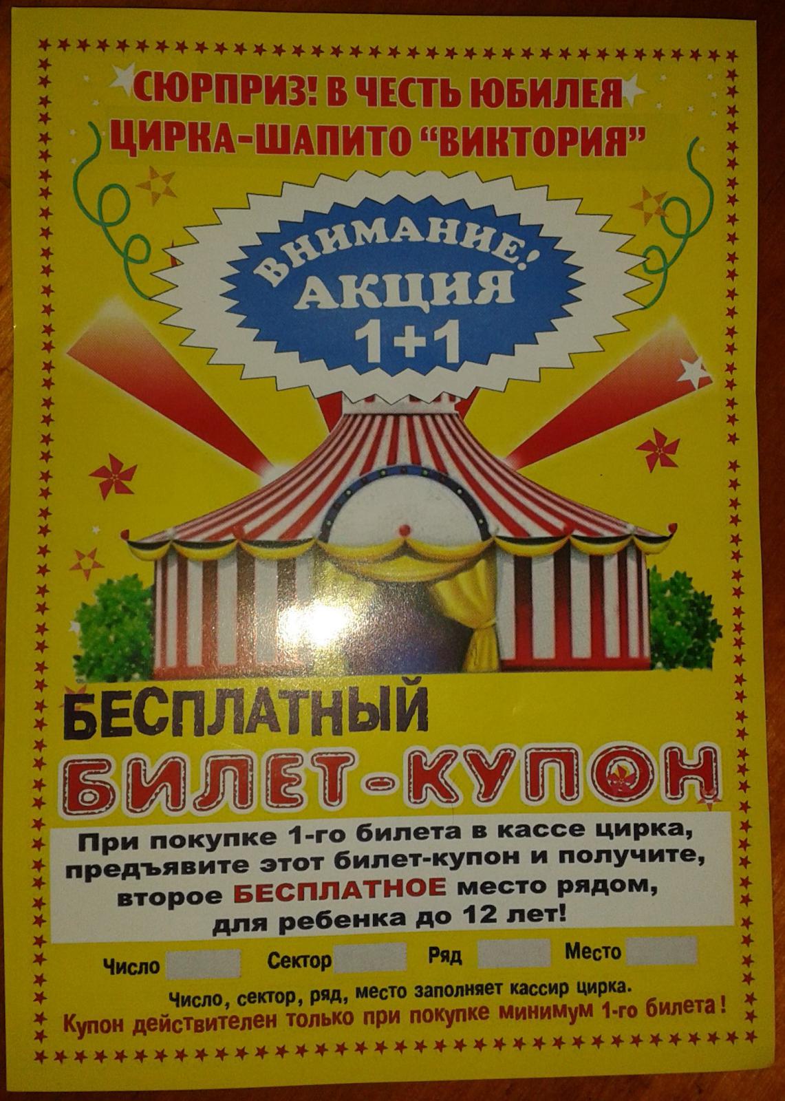 NevidimkA Опубликовано 14 июня, 2014 Опубликовано 14 июня, 2014 У нас было 2 билета на первый ряд, были с двумя детьми, пропустили без вопросов, младшая у папы на коленях, а старший сидел на скамейке) Народу полный шатёр) Спасибо. Хочу пойти одна с детьми 9 и 2 лет, купив один билет и отдав один купон. Интересно можно так? По идеи один бесплатно в силу возраста, без места, а другая по купону с местом.