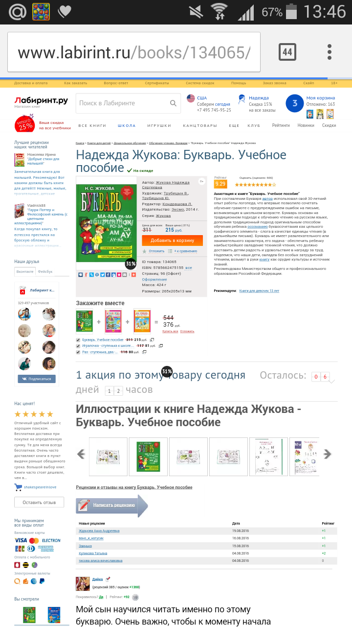 NevidimkA Опубликовано 29 августа, 2016 Опубликовано 29 августа, 2016 а букварь Жуковой (большой) за 245 руб. нормальная цена? В Галамарте за 189 руб. в перми: http://galamart.ru/c...swlrad/272-451/ А в Березниках мне почему-то запомнилась цена 199 руб...