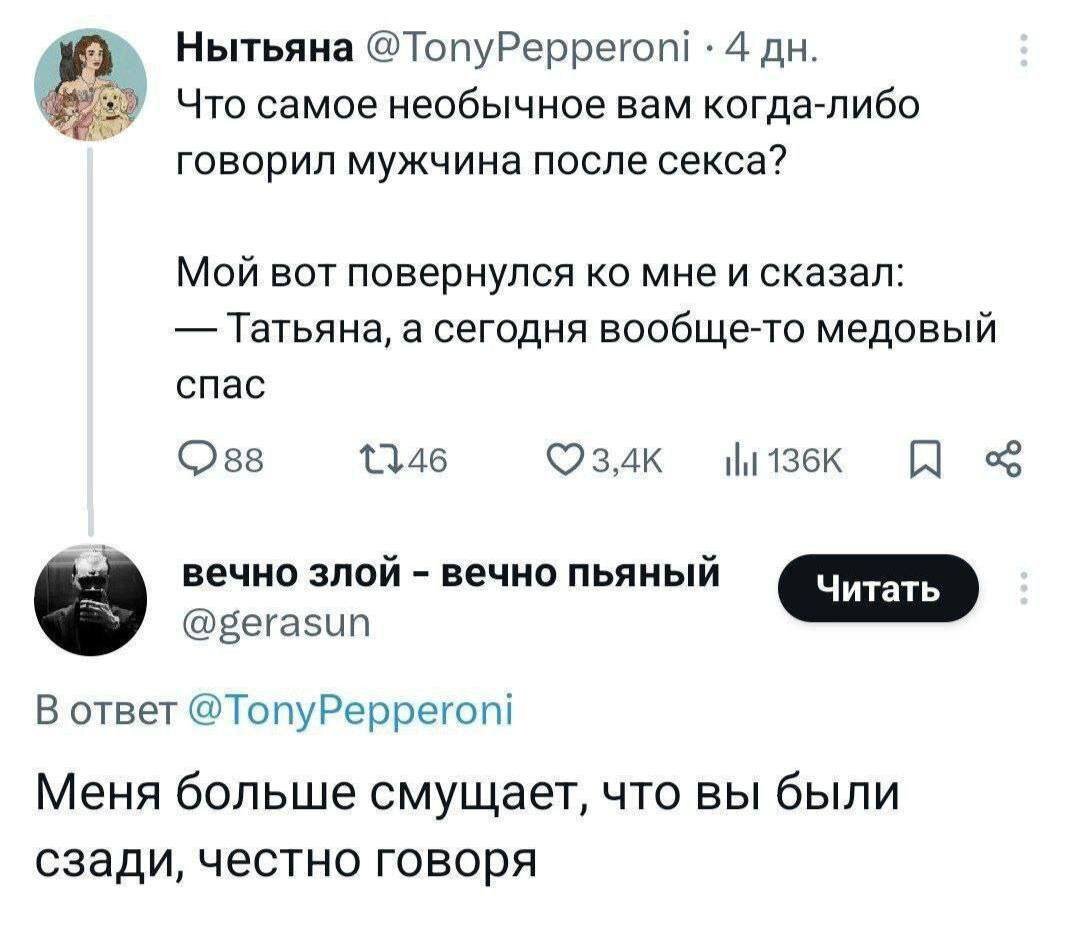 Малышка Опубликовано 29 сентября, 2024 Опубликовано 29 сентября, 2024 Ахмед никак не мог посчитать своих бывших, так как при этом всё время засыпал 1