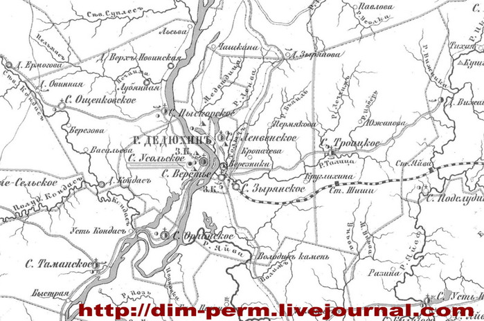 Ula Опубликовано 10 марта, 2016 Опубликовано 10 марта, 2016 Карта Соликамского уезда Пермской губернии 1895 год. Березники, так называется конечная станция Луньевской железной дороги на левом берегу реки Кама, получившая свое название от Березниковского содового и солеваренного заводов И. И. Любимова. Особенность этого промышленного пункта в том, что он не имеет вблизи себя оседлого рабочего населения. Селение состоит из заводской конторы, больницы, училища 8 двусемейных домов, одной казармы и нескольких квартир для заводской админгистрации. Рабочие приходят на заводы из ближайших селений: Усолья, Ленвы, Веретии и Дедюхина, расположенного от завода в 1,5-3 верстах. Солеварение здесь получило свое начало в 1873 году. Года Березниковская дача поступила в арендное содержание г. Любимова. Ранее она было собственностью казны. А последней [казне] досталась как наследие упраздненного в 1781 году Пыскорского ставропигиального Спасо-Преображеннского монастыря, переведенного в Пермь, и на основе которого был основа Пермский Архиерейский Дом, расположенный по адресу Комсомольский пр., д. 6. Веретия, - село на речке Зырянке. Левом притоке реки Кама. В селе имеются земельные наделы трех волостей: Зырянской, Ленвинской и Романовской. В селе находятся каменная православная церковь, построенная в 1746 году, церковно-приходская школа, почтово-телеграфное отделение, станция Луньевской железной дороги и земской почты. Первый раз Веретия, как село упоминается в 1647 году по поводу освящения в ней первой православной церкви. До 1678 года Веретия составляла вотчину Григория Никитина, а затем перешла во владение Строгановых. По сведениям 1895 года всего в Веретии 106 дворов с 261 жителем «обоего полу». Дедюхин. Горный город на левом берегу Камы, в 25 верстах от уездного города [Соликамска]. В городе находятся две православные церкви: каменный Собор во имя Рождества Христова, построенный в 1831 году и деревянная кладбищенская, построенная в 1851 году, земская управа, волостное управление Дедюхинской волости, мужское и женское земские училища, богадельня. Соляной промысел Рождественского Усолья, именно так назывался Дедюхин в XVII веке, обязан своим существованием монахам Пыскорского Спасо-Преображенского монастыря, которыми было положено здесь начало солеварению в 1670-74 годах. В 1805 году Дедюхинский промысел переименован в горный город Дедюхин. Время основания первой церкви в Дедюхине неизвестно, но имеется предположение, что уже в 1684 году церковь уже существовала. На это указывала надпись на древней иконе Рождества Христова, писанной стараниями Пыскорского архимандрита Пафнутия для Рождественского Усолья и помеченная 1684 годом: «Сей образ написан в молитвенный храм Спасов, в Рождественское Усолье … при архимандрите Пафнутии». Ныне это икона утрачена в связи с октябрьским переворотом 1917 года. По однодневной переписи населения, произведенной в Дедюхине в 1886 году: Дворов 610, мужчин – 2216, женщин 2607. А всего – 4822 человека. Из них: духовенства и дворян – 29, купцов – 105, мещан – 1037 человек. В городе Дедюхине родился известный пермский истории А. А. Дмитриев. Ленва. Село на левом берегу реки Кама в 25 верстах от уездного города. В селе находятся: каменная православная церковь, построенная в 1688 году Шустовыми из их же жилого дома, два земских училища. Мужское и женское. В середине селения нах