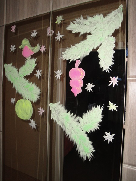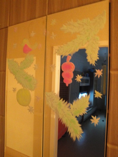 Ласка Опубликовано 10 декабря, 2014 Опубликовано 10 декабря, 2014 А мы вчера вечером шалали Разрисовали зеркала, Таиска визжала от удовольствия, что можно рисовать не только на диване... и ещё и вместе с мамой. Дала кисточку, она по всей квартире ходила "красила приговаривая И-ух! И-ух! Потом до меня дошло что это она Машу из мультика изображает!!! Пасту взяли для рисования не очень удачную, полупрозрачная вышла текстура. Ближе к праздникам добавим к рисунку детали. Будем так сказать "дорабатывать шедевр до совершенства"... снегирь на попугая похож, купим голубую гуашь, переделаем в Голубчика.