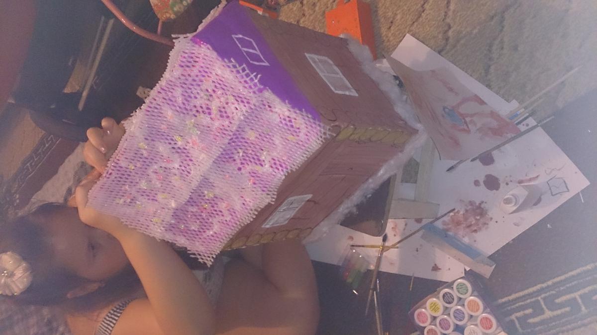 люкушка Опубликовано 14 декабря, 2014 Опубликовано 14 декабря, 2014 Мы тоже хотим поделится своими поделками из коробки а крышу сделали из фруктовой обертки. Приготовили домик в садик. В домике вырезали дверь и внутрь положили записки с пожеланиями на новый год.