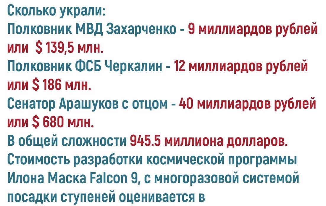 GARRY6490 Опубликовано 24 мая, 2019 Опубликовано 24 мая, 2019 (изменено) 17 минут назад, mex@nik сказал(а) : Вопрос: в какую сумму оцениваются затраты Илона? Давай решать какие-то менее глобальные более попроще задачи. Меня в школе недоучили и я всю жизнь цифры более 10000 считаю просто - "много". Изменено 24 мая, 2019 пользователем GARRY6490
