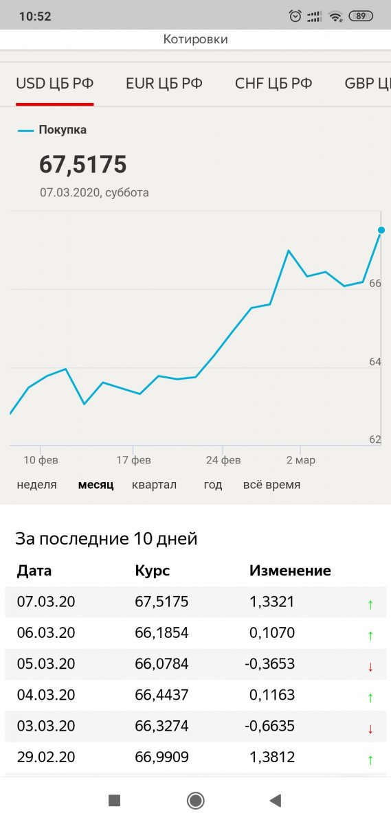 rom Опубликовано 9 марта, 2020 Опубликовано 9 марта, 2020 (изменено) 18 минут назад, jimm031 сказал(а) : Курс рубля к доллару - это же не ЦБ и не ММВБ, сегодня выходной. Настоящий курс узнаем завтра только. покупаешь ведь ты валюту не в ЦБ, а у обычных банков, а там сегодня так Изменено 9 марта, 2020 пользователем rom