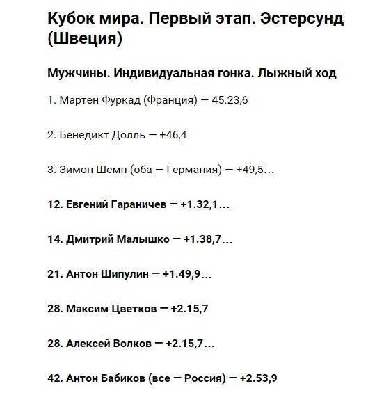 RomanIzrailevich Опубликовано 3 декабря, 2015 Автор Опубликовано 3 декабря, 2015 разочаровали? далеко??? да всё путём же...ходом всё очень даже неплохо...стрельба, да, подкачала...но это же первая гонка! Да конечно по первой гонке не стоит кричать "всё пропало шеф!" )) просто разочаровался) ... ждешь, высматриваешь эту мишень...бац и мимо...и еще раз мимо... а соперники промахивались уже по концовке в основном. Ладно со стрельбой, но ход... Вот лыжный ход гонки с спортбокс В десятке шустриков: 3 норга 3 француза 2 немца 1 болгарин 1 автриец если так в спринте побегут, то Фуркаду можно будет спокойно по 4-5 промахов делать и всё равно обгонит)