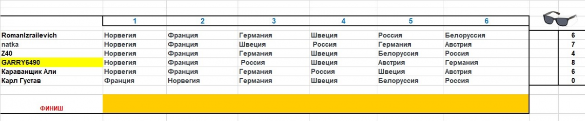 Z40 Опубликовано 6 декабря, 2020 Опубликовано 6 декабря, 2020 Думал написать как у РИ, но чтоб не было одинаково, Россию с Белоруссией поменяю Норвегия - Франция - Германия - Швеция - Белоруссия - Россия