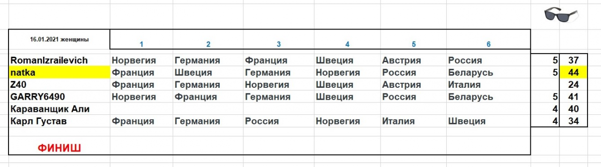 GARRY6490 Опубликовано 16 января, 2021 Опубликовано 16 января, 2021 5 часов назад, GARRY6490 сказал(а) : Дамский биатлон - он такой неожиданный. Не смущайся - смело Румынию на 1 место ! Я предупреждал...