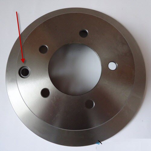 посмотри внимательно: шесть дырок для болтов крепления колеса, 2 дырки для снятия диска со ступицы и еще одна (сверху) - как раз для регулировки колодок ручного тормоза.