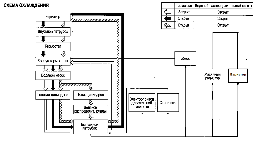 Схемки охлаждения по этому двигателю с вариатором. Два термостата - три режима.