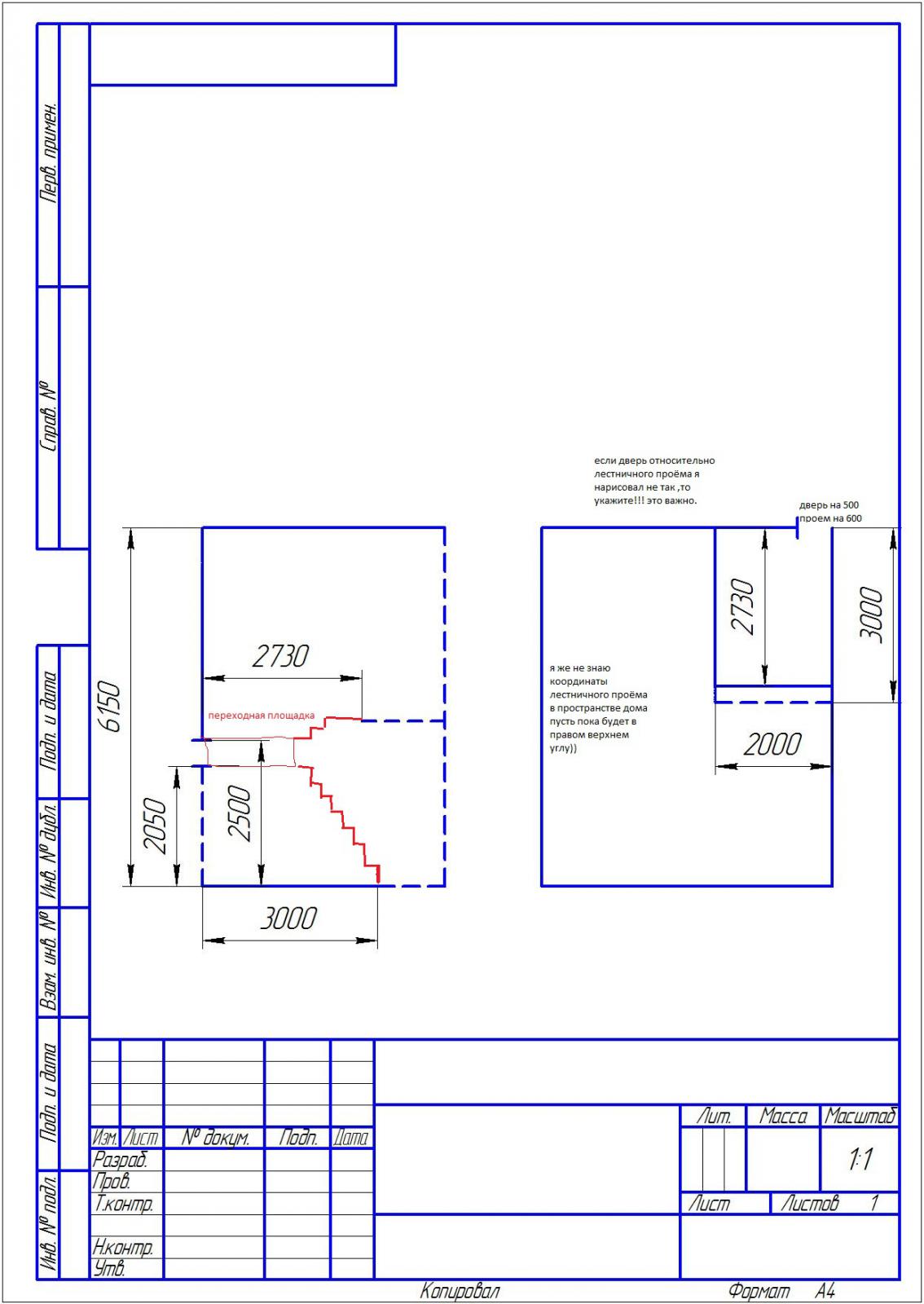 FOX Опубликовано 13 февраля, 2018 Опубликовано 13 февраля, 2018 итак: лестничный пролет 200 (ширина)*300 (длина)*615 (высота) см по полу 1-го этажа, 200*273 по полу второго этажа. высота до потолка первого этажа - 283 см, перекрытие - 28 см. А теперь проблемассссс: в середине стены (где предполагалась площадка межлестничная) стоит дверь! получается 50*100 (дверь)*50, высота двери 200см, от пола первого этажа над дверью на высоте 250 см окно. Сфотографировать вчера не получилось, но вроде бы понятно расписала, если какие-то расчёты упустила, померяем! Предполагалось изначально так как на фото, только заходить думали слева-направо