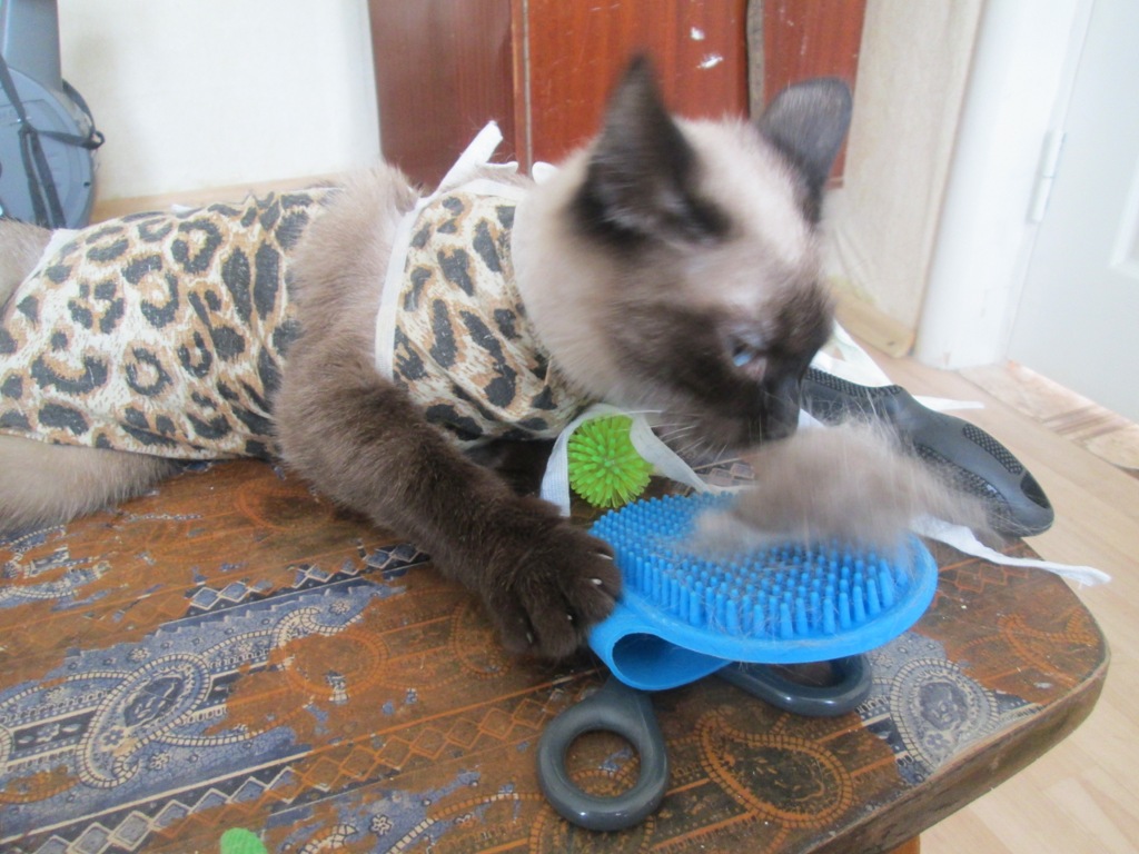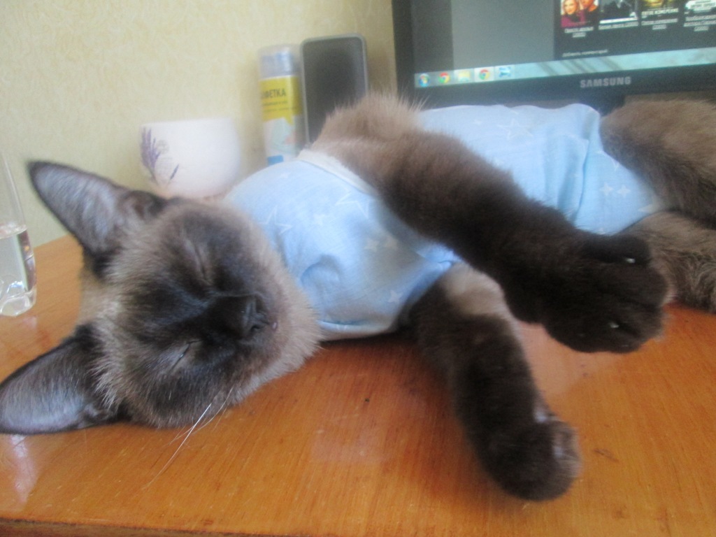 Нет Опубликовано 1 апреля, 2015 Автор Опубликовано 1 апреля, 2015 (изменено) Занялись вечерним туалетом, под долгие уговоры удалось обстричь когти на одной лапе.Пока я стригла когти, эта маленькая дубина махала языком по бокам(к пузу то доступ оганичен) и нализала себе красоту, все небо и язык синие. потом мы опробовали фурминатор. Ничего так, только мясо надо нарастить, не больно то приятно по костям шуровать. Надо проверить не вычесали ли что лишнее, с Наташей так и голой можно остаться. Все, девочка прибрана, пожалте в клеточку. Позорная зассышка спит на вспененной клеенке. Спокойной ночи всем. Изменено 30 июня, 2016 пользователем Нет