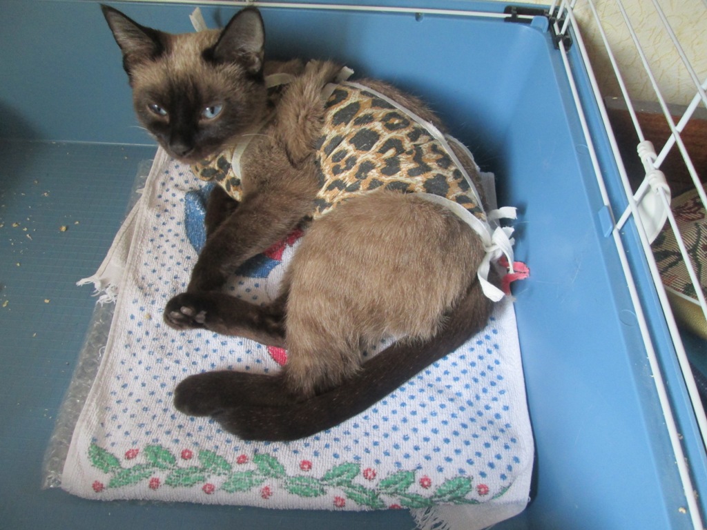 Нет Опубликовано 5 апреля, 2015 Автор Опубликовано 5 апреля, 2015 (изменено) Решили мы деньги лишние не транжирить, а снять швы самостоятельно. Фенька девочка сговорчивая, терпеливая, мне доверяет, так почему бы не попробовать. Сказано - сделано. Делать мне до этого таких операций ни разу не приходилось, но видеть видела много раз.Так как маникюрных ножниц у меня нет вооружилась я лезвием, зубочисткой, хлоргексидином и ватными тампонами, уложила коху между двух валиков и приступила. Нет, не к операции, а к душевному разговору, до которых Фенечка большая любительница. Рассказала я ей что умница она и красавица, а ее огромные глаза сразу выдают в ней потомственного оленя. Девка сначала обниматься полезла, но быстро поняла, что не за этим мы сегодня собрались и принялась старательно вылизывать грудку, а я промочив ватный диск раствором, нашлепнула его на шов. И дальше стала плести сказки из цикла "Фена - дочь оленя". Минут через пять получилась вот такая картина Все коросточки со шва, а за одн и вошкины засранки вокруг шва отмокли и прекрасно отошли, а поле деятельности для экзекуции было идеально чистым. Аккуратно срезав лезвием узелки на концах шва, я подцепила зубочисткой и разрезала лезвием нитку посередине шва, потом сделала еще два разреза на нитке и потихоньку все отрезочки вытянула. Вся процедура заняла минут 40, с перерывами и обнимашками минут по пять, после этого даже немного почесались и почистили ушки. Одели чистую попонку и стали почти здоровыми девочками, правда немножко обиженными, все таки нитки через пузо тянуть больно. Всякая нечисть из кошечки вычесывается хорошо, в живых никто не остался, и спать она стала очень спокойно, видать никто не беспокоит. Так что недельку, дней десять и коха в подарочном варианте готова для встречи с мамочкой. Фенечка уже две ночи спит не в клетке и в туалет ходит в лоточек. Правда в большой и новый не пошла, но мы ей выдали поменьше и старенький, правда попис пока мимо, но рядом, а покак в лоток. Ничего, не страшно, все приложется. А днем очень любим спать вот так, все таки тактильный контакт ей очень необходим. А еще вчера приехал новый домик, подаренный нашему санаторию филантропом Natazayka и Фенка тут же оценила девайс. Ведь раньше, в моменты тревоги малышка пряталась в клетке или лежанке, но клетка дырявая совсех сторон в ней она на виду, а в лежанке хорошо если только я прикрою вход платком, а тут домик, стенки со всех сторон и маленький вход. Некоторым кошечкам нужно уединение, Фенечка из таких. У нас тоже есть домик, так в нем все мои кошки по очереди уединяются. Но наш дом из валянной шерсти, его не постираешь, можно только вымораживать, его страшно давать на прокат. Огромное спасибо Наташе за такую полезную штуку и главное что его можно постирать. Вот такие у нас дела. Изменено 30 июня, 2016 пользователем Нет 1