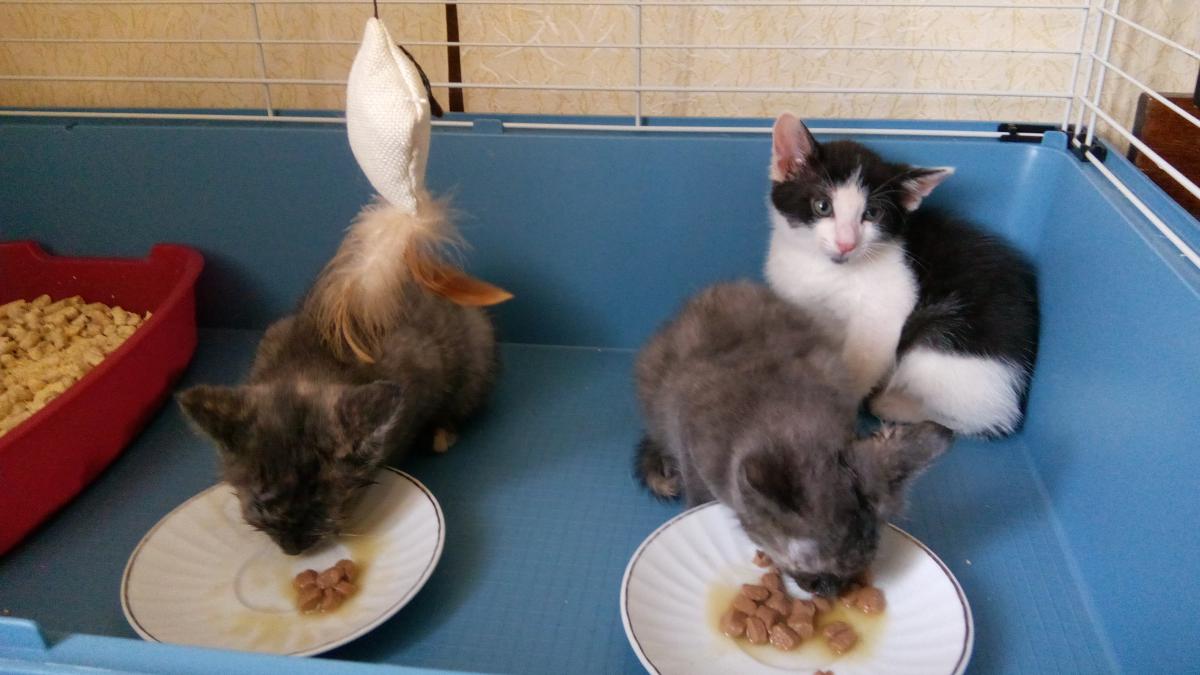 Нет Опубликовано 19 октября, 2015 Автор Опубликовано 19 октября, 2015 Всем привет из санатория. У нас все по графику, банда гостей освоилась,лопает, орет и дерется во время процедур, носится и виснет на штанах и шторах. Ноги у них крепко еще не стоят, так что чаще всего они не бегут на поворотах, а едут юзом,смешиваясь в клубок. Трех стазу у меня еще не было,поэтому весь день проходит в процедурах и кормлении. Девочки уже находят лоток легко в комнате, правда этих лотков стоит три штуки. А пацанчик из клетки надолго не выпускается, мало ли какой конфуз :) Но он самый крепенький,самый красивенький и глазки такие ясные. Так что после завтрашней глистогонки парень будет искать своих родителей. Девки еще безымянные,никак себя не проявили. А пацанчик получил временное имя Феликс,очень он похож на одноименного Фекликса из рекламы. До чего же хорошенький, прямо мимимишечки. 1