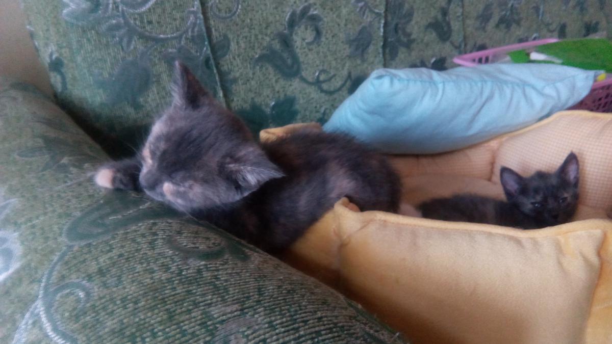 Нет Опубликовано 26 октября, 2015 Автор Опубликовано 26 октября, 2015 А мы то растем, а мы хорошеем. Дети носятся как кони, разрушая потихоньку карантин, кушают РК китен в течении дня и еще есть РК в баночках,это на утро и вечер. А Бозиту уже съели. В лоток встают даже ночью,железно пользуют три лотка, никаких каках в неположенном месте. пьем таблетки и смекту,потому что понос Сегодня покажу вам девочек. Умочка. Она уже железно знает, что моя любимая кошечка, лезет по штанам на руки смело, в глаза заглядывает, стала уже красивенькой, в лоток бежит с другого конца комнаты. Вот и сейчас вылезла сонная откуда то из-за дивана, нагадила вонько в лоток и опять ушла спать за диван, почти не раскрывая глаз. Глазки и ушки у нас чистые, таблетки пьем, а вот сделать укол я ей не смогла, такая ножка тоненькая, боюсь. Вторая девочка так и живет без имени ,как то не придумывается ей ничего. Девка баская, если бы не микроспория, давно бы ее пристраивать надо. Сероголубая с солнечными пятнышками на шкурке, а кулачки кремовые. А теперь о насущном, котята гадят как перепуганные, у двоих еще понос, приходится менять все три лотка каждый день. Может кому то не в напряг будет, у кого машина есть, привезти нам ведро древесного наполнителя, самого дешевого.