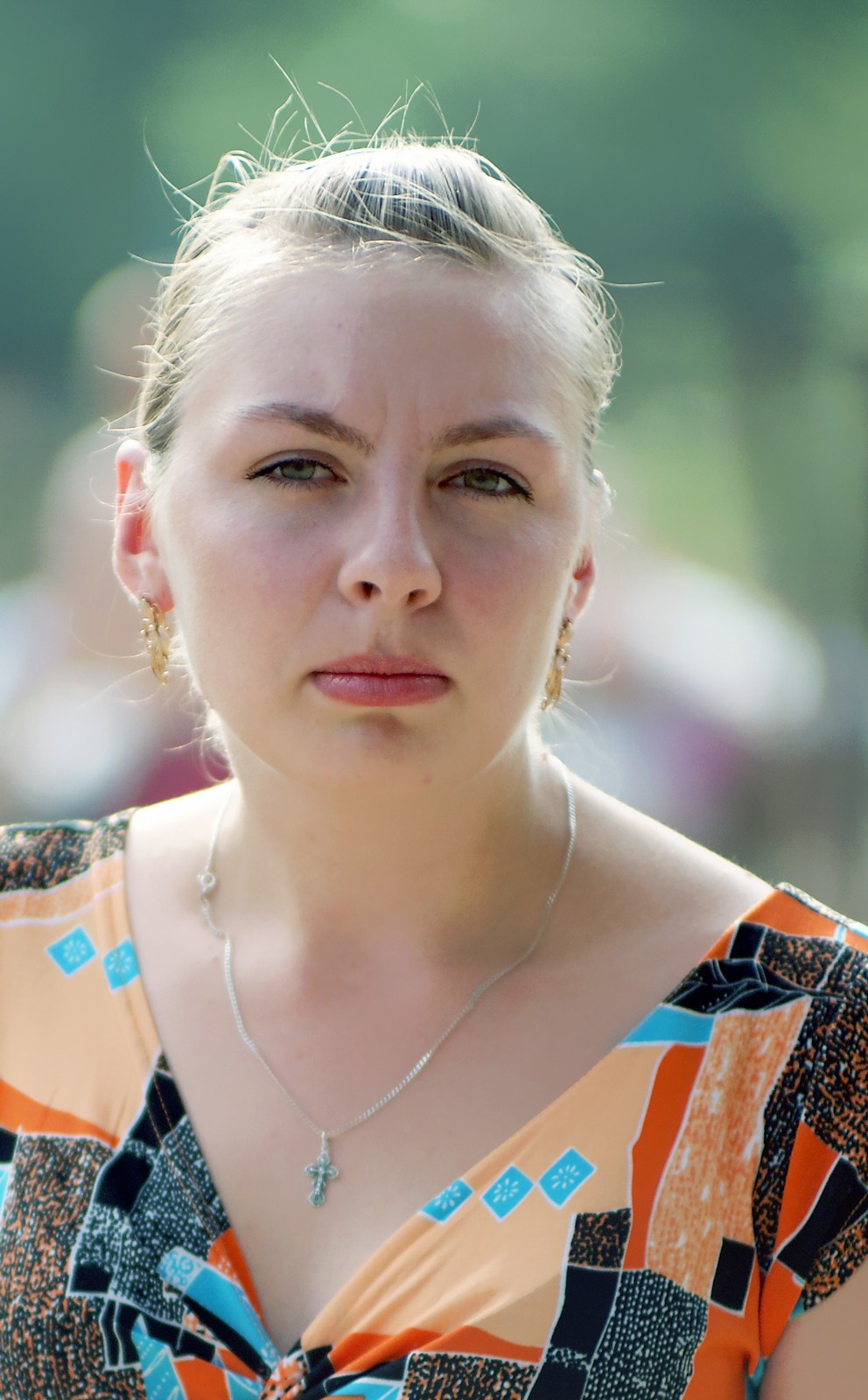 NC Опубликовано 22 января, 2011 Автор Опубликовано 22 января, 2011 Критика приветствуется и даже требуется, фото сделано на спор. =D>Позже расскажу про тему спора и почему девушка с таким недовольным лицом. :bi: Я сегодня штатив не купил, так точ злой и сердитый. :-k Цас вдам... :) Лицо в тени, плоское и оттенок очень .. э-э-э... неестественный. Как будто несчаастную били фейсом об ... не тейбл, но чот-то плотное, типа пляжного песка - синюшние оттенкит на лбу. под глазами. тут же и недовольство - видимо, недобили или реванша требует. :dada: Есть пересветы и провалы в теях, хотя Бог с ними, тенями - это тряпочка. Неудачно лежит фон - как будто прирос к модели - непроизвольно сливается с плечами, и оттенок при этом имеет вдобавок телесный, как будто там склад чего-то голотелого. Цепочка на груди не отвечает требованиям закона Ньютона про яблоко и притяжение. Подбородка нет! :wink: губы прямо на шее? ...в общем вот, покусал. :bm:
