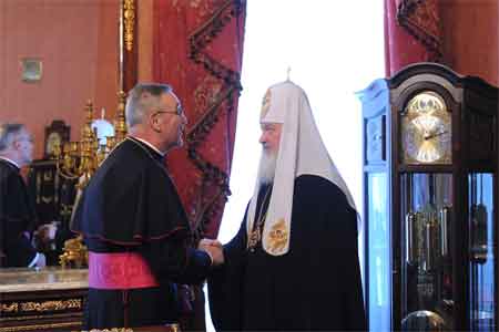 kross Опубликовано 27 января, 2011 Автор Опубликовано 27 января, 2011 Патриарх Кирилл принял Апостольского нунция в РФ архиепископа Антонио Меннини Встреча предстоятеля Русской Православной Церкви с апостольским нунцием в Российской Федерации архиепископом Антонио Меннини, завершающим свое пребывание в России, состоялась 26 января в Москве в патриаршей рабочей резиденции в Чистом переулке, сообщает Служба коммуникации ОВЦС. Во встрече приняли участие председатель Отела внешних церковных связей Московского патриархата митрополит Волоколамский Иларион, руководитель Управления Московской патриархии по зарубежным учреждениям архиепископ Егорьевский Марк. Апостольского нунция сопровождал первый секретарь посольства Святого Престола в Российской Федерации монсиньор Висвальдас Кульбокас. Патриарх Кирилл приветствовал гостя. «Я хотел бы поблагодарить Вас за труды в качестве представителя Святого Престола в Москве и отметить Ваш личный вклад в решение непростых проблем в отношениях между нашими Церквами; по милости Божией эти проблемы решаются положительно, что меняет климат двусторонних отношений к лучшему. Это во многом Ваша заслуга как полномочного представителя Святого Престола». В беседе Патриарх упомянул, что перед началом встречи отслужил литию о жертвах террористического акта, совершенного 23 января. В этот день по благословению предстоятеля Русской Церкви погибших от взрывов в московском аэропорту «Домодедово» поминали во всех православных храмах Москвы. Со своей стороны архиепископ Антонио Меннини выразил соболезнование в связи с гибелью невинных людей от рук террористов. Обращаясь к Патриарху Кириллу, он сказал: «Я очень благодарен Вам, Ваше Святейшество. Я был рад работать на благо наших Церквей, но эта работа была бы намного трудней без Вашей поддержки, дружеского отношения и христианской любви». «Я никогда не забуду Вас и Русскую Церковь, но, наоборот, буду хранить любовь к ней», – заверил апостольский нунций в Российской Федерации. Он подчеркнул, что готов по мере сил содействовать делу совместного свидетельства миру о христианских ценностях. http://3rm.info/8568-bytovye-yekumenichesk...i-patriarx.html Католики примут участие в составлении православного катехизиса 25 декабря 2009 года Священный Синод Русской Православной Церкви утвердил состав рабочей группы по подготовке современного Катехизиса Русской Православной Церкви. Рабочую группу возглавил председатель ОВЦС МП митрополит Волоколамский Иларион. В интервью порталу «Седмица.ru» митрополит, отвечая на вопрос, кто принимает участие в написании Катехизиса, заявил: «В первую очередь члены рабочей группы, назначенной Священным Синодом, ведущие и наиболее авторитетные пастыри и богословы нашей Церкви, знатоки Священного Писания и Священного Предания Церкви, святоотеческого богословия и традиций православного подвижничества, известные эксперты, ученые и специалисты. Очень важно, что современный Катехизис Русской Православной Церкви станет соборным трудом многих авторов, специалистов в различных областях богословия, будет результатом соборного церковного разума». Между тем, как сообщает официальная вещающая служба Радио «Ватикан», в составлении современного Катехизиса Русской Православной Церкви примут участие и католики. Об этом заявил изданию апостольский нунций