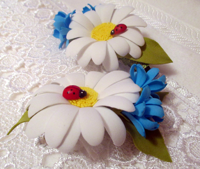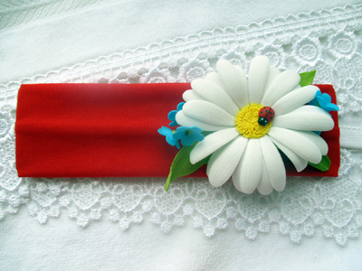 Марусе4ка Опубликовано 16 мая, 2015 Автор Опубликовано 16 мая, 2015 Мое ромашковое настроение! :) лето уже близко :) На днях сделала ромашку для маленькой девочки и заразилась ромашковым настроением. Белая ромашка расцвела в саду! Это к ней так быстро я сейчас иду: Хочется поближе рассмотреть цветок, Пальчиком потрогать хрупкий стебелек. Можно просто нюхать аромат густой, Можно любоваться кружевной листвой. С настроением сделала венок-ободок с полевыми цветами: ромашками, незабудками, колокольчиками и клевером. Ободок универсальной формы - сзади крепится на лентах, подойдет как для головы девочки, так и взрослой женщины (такая конструкция очень нравится моей дочке - за ушами не давит, как с обычным ободком). Его можно носить как ободок и как венок. Кроме веночка появились и такие симпатичные ромашки - заколки крокодильчики и и заколка автомат с "лимонными" розами: