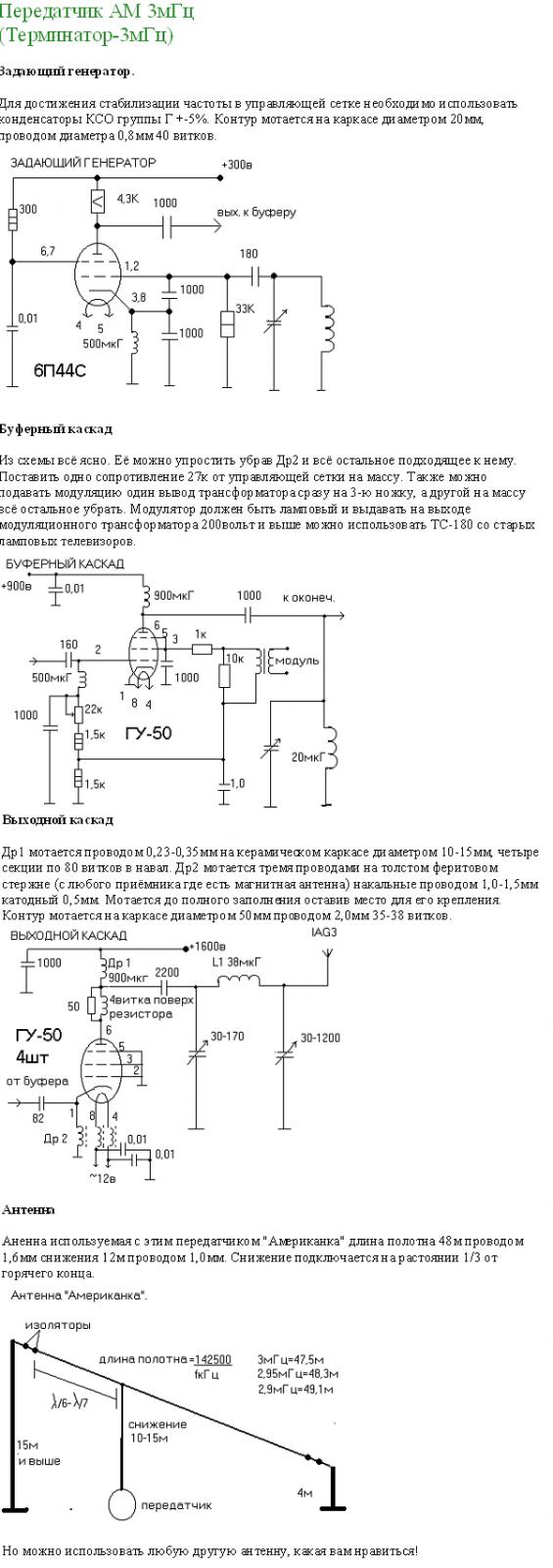 Гость рябина-9 Опубликовано 21 ноября, 2015 Опубликовано 21 ноября, 2015 -Вариант работоспособный.Как и большинство схем подобного рода.Отличаются они,по сути,только вариацией применяемых ламп. -Касаемо обсуждения.Сразу несколько замечаний: -Задающий сделан по схеме классической ёмкостной трёхточки,с электронной связью.Но! Нафига такая ,относительно мощная(читай горячая) лампа?Это чревато излишним нагревом контура ЗГ и соответственно с его выбегом по частоте.Опять же-нет стабилизации по экранной сетке,которая,для подобного рода схем,является анодом трёхточки. -По буферу-это никак не буфер,бо основное назначение буфера-это развязка,между ЗГ и последующим каскадами.Иными словами,каскад,играющий роль буфера,должен работать без сеточного тока.А здесь смещение этого,так называемого буфера,сделано автоматическим,за счёт,как раз,сеточного тока.Это не буфер,а драйвер.Для раскачки оконечного каскада.Драйвер,в котором,дополнительно,осуществляется модуляция.Способ модуляции то же,далеко не идеален. А так,в целом,покричать можно.При хорошем прохождении можно даже и далеко...