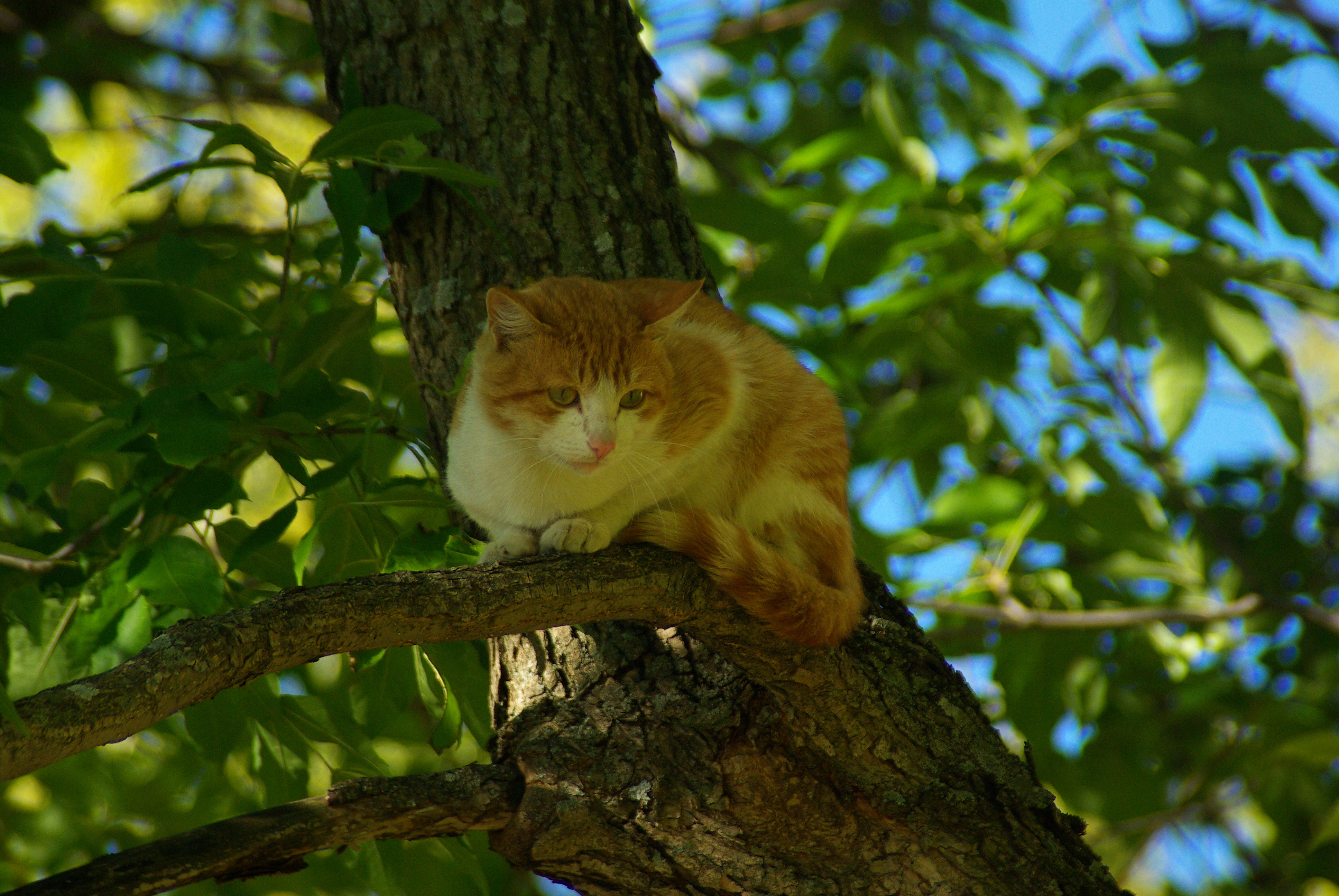 NC Опубликовано 13 сентября, 2010 Опубликовано 13 сентября, 2010 Котейка ... загнали мои зверюги рыжика на дерево."Ходите, ходите, все равно не найдет!" Точно, спокойно так сидит, знает, что не достанут. Только это.. Баланс белого рыжего неправильный? :wink: