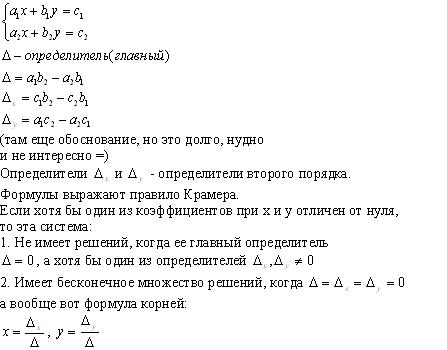 @nNet Опубликовано 21 января, 2006 Опубликовано 21 января, 2006 Ну, если хочешь, объясни. про Гауса могу напарить (давно было дело, как никак) например, система состоит из нескольских уравнений, мы решали даже когда было по 3,4,5 неизвестных... Метод Гауса заключается в том, чтобы последовательно исключать переменные, т.е. найдешь одну, подставляешь во все уравнения, там дальше уже проще... /да ведь El Kilo?? =)/ Правило Крамера.
