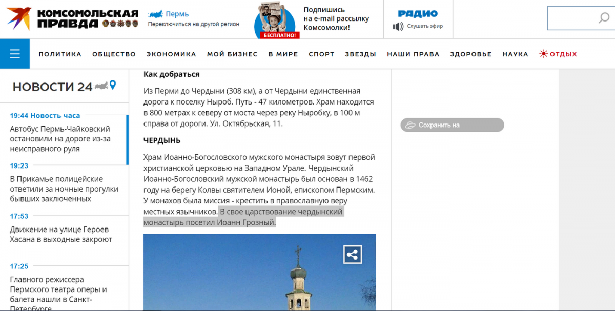 HollyCon Опубликовано 5 декабря, 2019 Опубликовано 5 декабря, 2019 Может кто-то пульнул в вики слух, а комсомолка стащила? Может мы присутствуем при рождении нового факта по типу эффекта Манделы? Иначе получается что в Чердынь царь не поленился заехать, а когда в 1552 году соликамцы попросили помощи для защиты от ногайцев, то он вместо войска послал им простую икону Николая Чудотворца? В 29.11.2019 в 12:01, GARRY6490 сказал(а) : Но источников слишком много стало Причём источники эти копипастят текст друг у друга, потом вылазят в топы, впоследствии попадают в википедию и через пару лет становится неясно где правда, а где вымысел. Я вот читал где-то что защиты просили не соликамцы, а Чердынь или Покча и именно им посылал складень Иван Грозный. Соликамцы его уволокли уже намного позже и после реставрации в Москве уже не вернули. Однако, быстрое гугление моих фантазий не подтверждает. Везде пишут что именно Соликамску дарил. Хотя тогда центром была Чердынь и именно там сидел царский наместник. Воеводы в Соликамске появились намного позже.