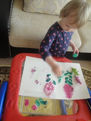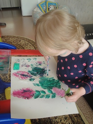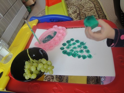 Ласка Опубликовано 12 августа, 2015 Автор Опубликовано 12 августа, 2015 Доброй ночи))) Таиска спит, конечно, а я гербарий закладываю на сушку. До шишек не дошли, тормознули на клумбах и газонах, ворох цветочков. Розовая метёлка такая нежная, для гербария не подойдёт, вот и придумали рисовалку со штампами. Как всегда, готовлю палитру, больше трёх красок редко предлагаю. Если есть предмет, могу нарисовать образец (как сегодня). Потом зову. В процессе работы перешли на кисточку, дорисовали себе зелёные подводки. У нас проблема - закончить занятие. Невозможно кисточку забрать, готова возить ей до дыр на листе. Мы завтра тоже с натуры будем рисовать виноград (я сегодня очень красивую гроздь купила))), тоже штампиком (я их из посудомоечных губок вырезаю), присоединяйтесь