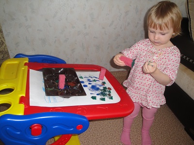 sidiu Опубликовано 25 августа, 2015 Опубликовано 25 августа, 2015 Кораблики делать не стали, погода в доме не для игр с водой, зато была вот в такая игра на внимательность: потребуется набор крупных бусин, пуговиц + лоток для яиц (у нас из под киндеров), я выкладывала "линейку", а дочка повторяла, не всегда все сразу получалось, но в итоге рядочки сложились))) Задание на внимание, усидчивость и мелкую моторику источник https://vk.com/galkaigralka?w=wall-32420398_31648 p.s закрепили магнитами на мольберте рисунки за день, ходит любуется, пришел папа - подвела показать шедевры, рассказала кто нарисован, кто рисовал)))