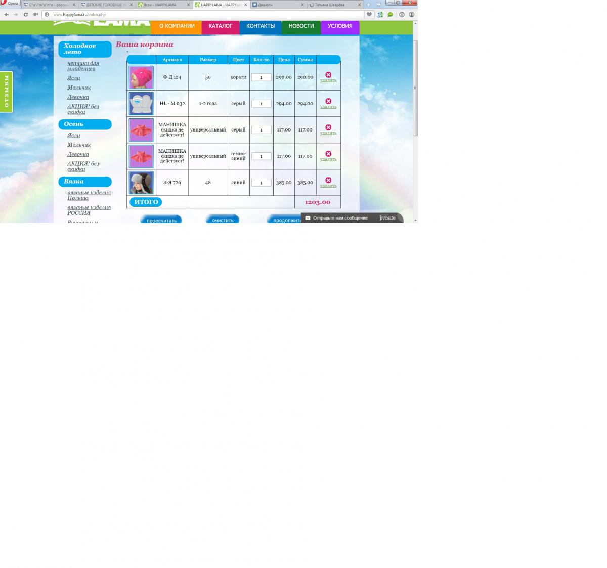 rover Опубликовано 31 августа, 2015 Автор Опубликовано 31 августа, 2015 Лариса, день добрый!, шапочки только по3-и штуки можно заказывать? если по одной тогда мне пожалуйста: артикул З-Я 279 ,размер 42, цвет красный, цена-380,00руб; артикул З-Я 228 , размер 42, цвет свело -розовый, цена 380 ,00 руб; артикул Шапка SKM 371 двухслойная, размер 52-56, цвет(такой же как на картинке -это бежевый или коричневый), цена 225,00 руб. Добрый день! По одной.. но желательно по три Всеми силами ).. цвет такой же как на картинке Я написать не смогу.. лучше цвет прописывать.. Ваш заказик принят.. и напомните , пожалуйста , Ваш номер телефона..