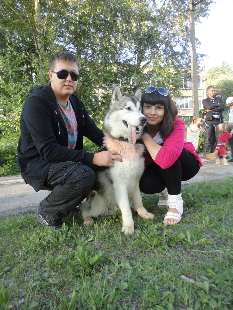 Лебедь_писанный Опубликовано 27 мая, 2012 Автор Опубликовано 27 мая, 2012 Итак, сегодня у нас в городе проходила городская выставка собак и спортивный марафон. Мы представляли породу аляскинский маламут. Оказалось, что это уже одна из многочисленных пород в нашем городе. Породу представляли: Виби, Даблик, Ермак, Ефросинья (Рада), и щенок Анти. Бэбики и щенок выступали еще и на выставке (своих мы не стали выставлять, дабы не составлять конкуренцию новичкам - многие собаки и их хозяева вообще первый раз были в ринге). Зато Виби представляла вид спорта - вейтпуллинг. Правда мы немного не рассчитали с поверхностью и грузом - и Виби не удалось протащить бетонный столб на 5 метров, но сдвинуть она все-же его смогла :-[ А Даблик просто дурака валял на мероприятии. Ну и немного фоток с мероприятия Это я рассказываю про породу Ну а это Виба при любом ласковом слове падает на спину и подставляет живот (это я медальки с ошейника снимала) :crazy: За фото спасибо Наташе (shunya)