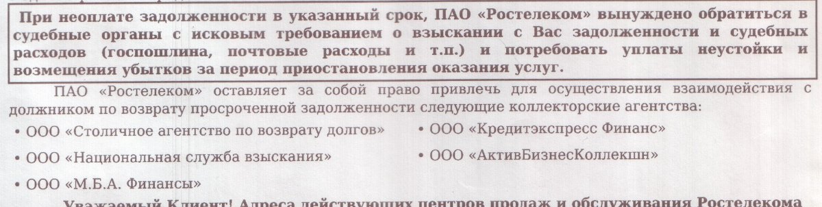 Akon Опубликовано 25 января, 2020 Опубликовано 25 января, 2020 6 часов назад, men сказал(а) : Контора РТ находится в Новосибирске. Долг может быть и не мифическим. Все зависит от формулировок в договоре. Это раньше при неоплате услуг телефонии просто отключали точку. Теперь при отказе от пользования стационарным телефоном обязательно нужно сообщить об этом поставщику услуг. В противном случае плата начисляется в соответствии с тарифом. Расторгнуть договор можно либо в любом офисе, либо по бесплатному номеру телефона (он, кстати, указан в претензии от РТ) то есть теперь так, человек например забыл оплатить два-три месяца (хотя утверждает что каждый месяц на почте платила, но чеки выброшены), просто тупо начисляют абонентку + пени и присылают письмо о возможном суде и передаче долга коллекторам ? Это просто п....ц