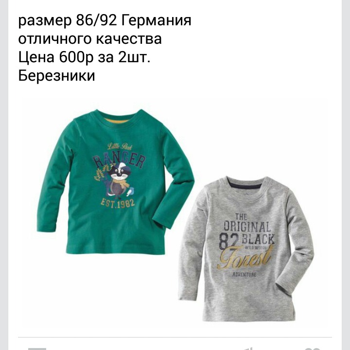 Кsения Опубликовано 21 марта, 2016 Опубликовано 21 марта, 2016 Продам новую качественную одежду из Германии, размер 86/92. В наличии лонг зеленого цвета 300р. т. 8 952 65 04 304