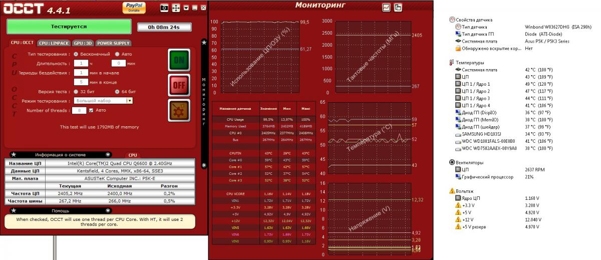 Paradox Опубликовано 13 апреля, 2016 Опубликовано 13 апреля, 2016 ОССТ возможно брешет по температуре Не брешет, а некорректно меряет. Датчики на процессоре отдают значения температуры как "разница от tjmax (температура конкретного процессора, при которой срабатывают защиты от перегрева)". В АИДе, RealTemp значения tjmaх можно изменить в настройках, либо они определяют его корректнее, чем ОССТ. Судя по всему ОССТ берет значение tjmax=100, а у моего процессора 85. Но он удобен тем, что после создания нагрузки создает файлы с графиками на все параметры. По этим графикам я и ориентировался, вычитая 15 градусов с результатов. Нагуглил: The official TJ-Max for q6600 Go is 90C Собственно разница по скрину между ОССТ и Аидой как раз 10 градусов.