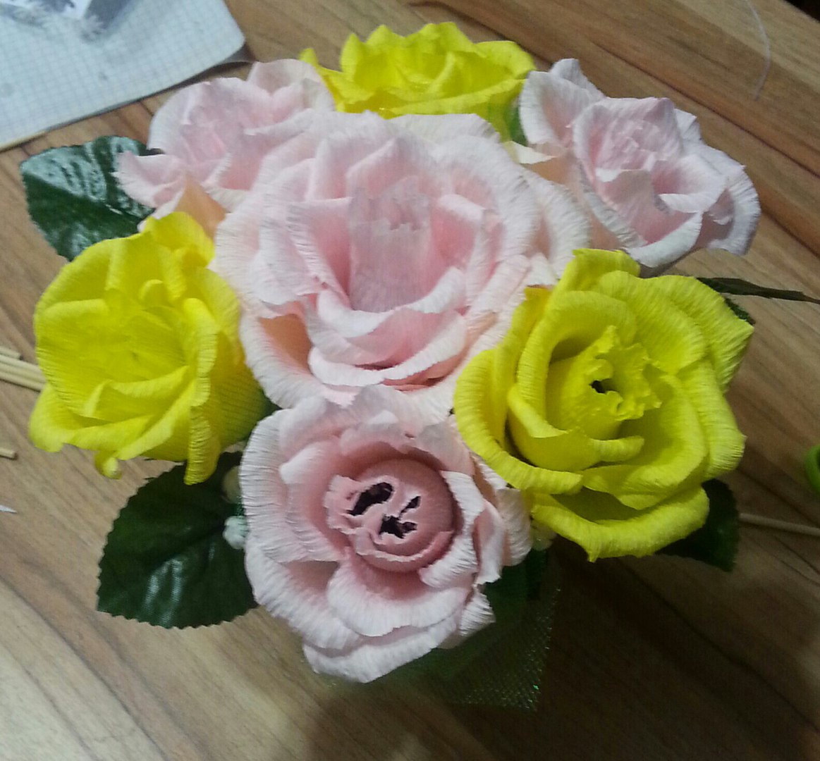 Творческая Мастерская Опубликовано 16 апреля, 2016 Автор Опубликовано 16 апреля, 2016 Приглашаем вас на индивидуальный Мастер-класс - Горшочек с розами из конфет и гофро-бумаги Очень часто нам приходится дарить конфеты на праздники, дни рождения или в качестве благодарности, банально дарить коробку конфет, гораздо интересней сделать из конфет что-то оригинальное. На этом Мастер-Кассе мастер научит вас делать розы (7 шт.) из гофрированной бумаги с конфетами, познакомит вас с тонкостями работы с этой бумагой, для того что бы вы дома самостоятельно могли делать из этого материала шикарные букеты. Все необходимые материалы для МК предоставляются. Домой вы уйдете с готовым подарком для родных и близких, а так же умением сделать красивые цветы самостоятельно. На Мастер-Класс Вам необходимо принести свои инструменты – клеевой пистолет и удобные ножницы, а самое главное, хорошее настроение. Продолжительность МК 3,5-4 часа Стоимость МК 550 рублей. Для записи на посещение Мастер-Класса и согласования для вас удобного времени пишем в комментариях или мне в ЛС, либо звоните по телефону и записывайтесь 8 982 48 61 331. на фото работы учеников