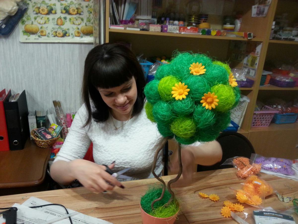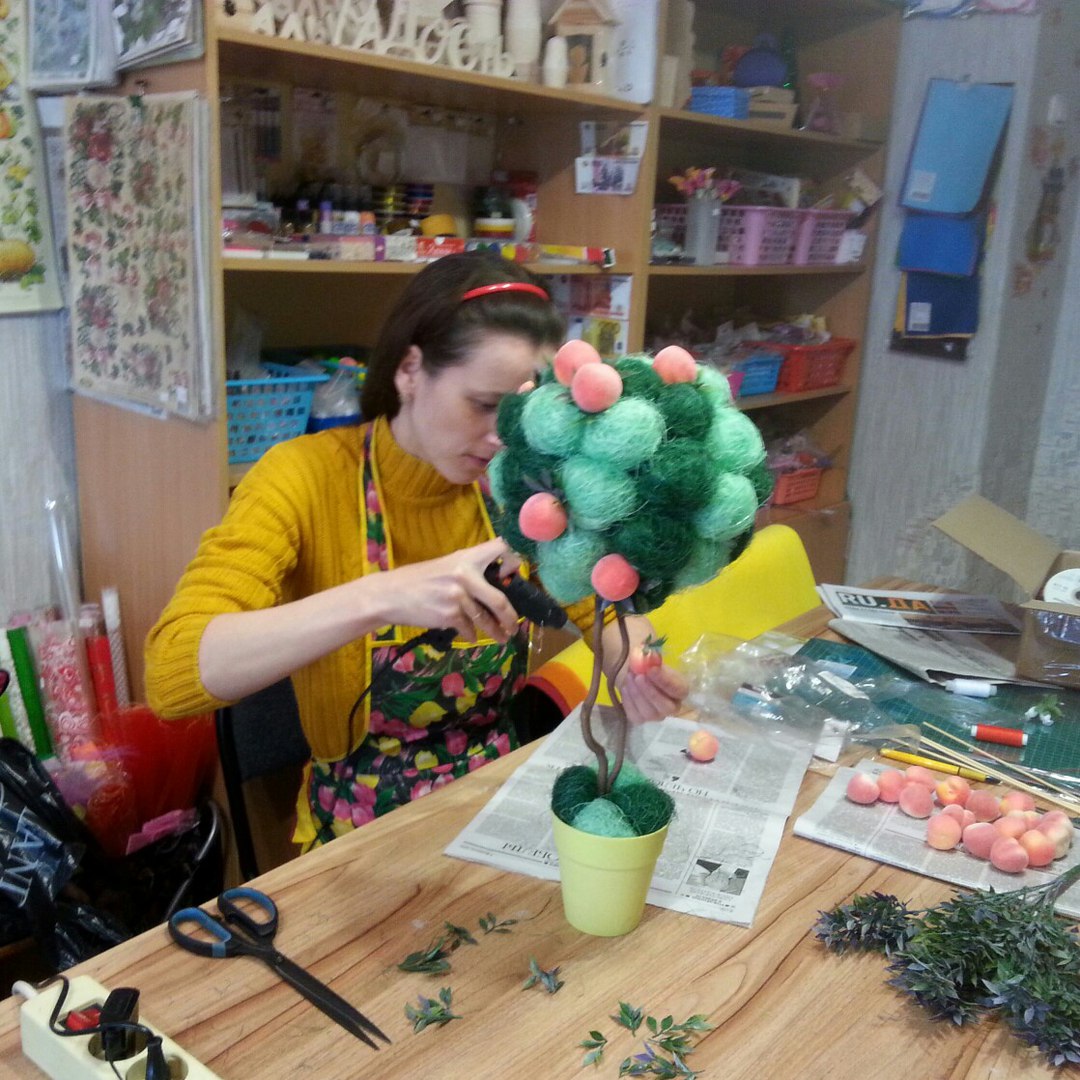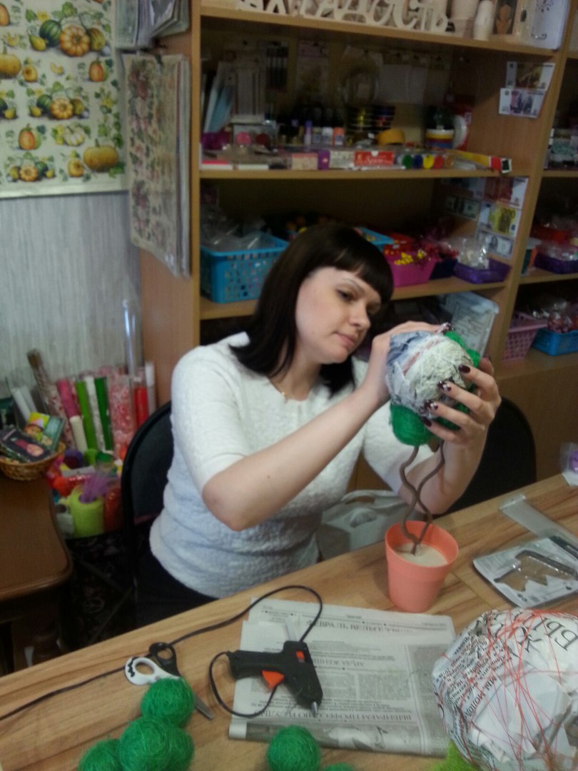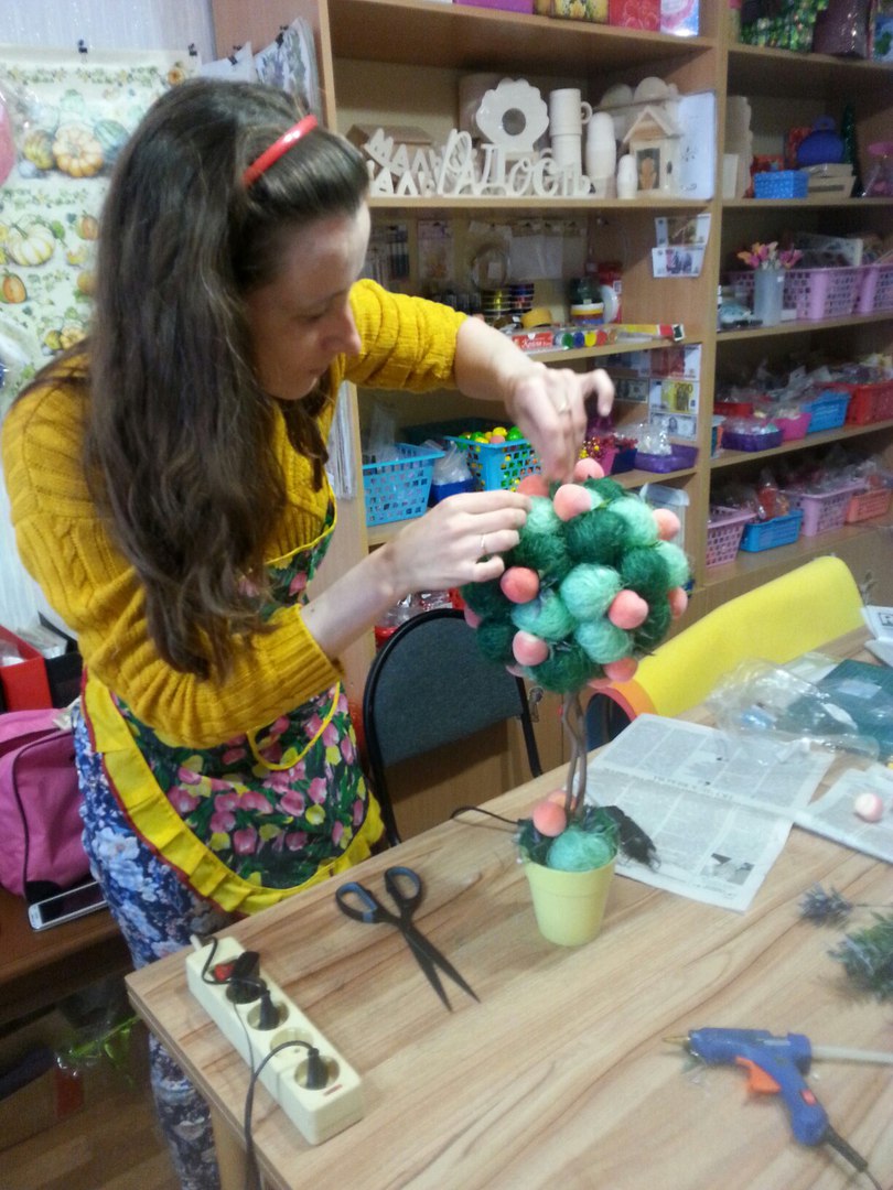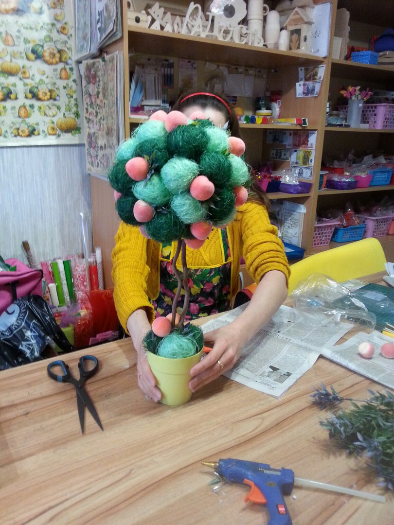 Творческая Мастерская Опубликовано 12 апреля, 2016 Автор Опубликовано 12 апреля, 2016 Сегодня с восхитительной Еленой сажали ее первый топиарий, я очень надеюсь что не последний! Леночке спасибо за ее позитив и приятное общение! Надеюсь ей МК очень понравился, дерево получилось просто замечательным, ярким, прямо летним, жаль что фото не передают всех красок!