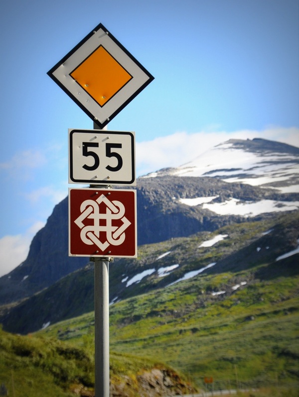 Makc Опубликовано 1 сентября, 2012 Опубликовано 1 сентября, 2012 Проезжая мимо этого дорожного знака в первые пару секунд подумал что на табличке изображена схема проезда впереди лежащей развязки,на ходу пытался разобраться в хитросплетениях нарисованных на нем дорог, мозг вскипел,извилины переплелись так же как линии на знаке,главная мысль была: " откуда в горах в дикой глуши взялась такая развязка? ", остановился, вышел и понял что это не схема проезда а какой то неведомый мне знак, больше напоминающий восточный орнамент, поржали, сфотографировал и дальше поехали... Знак показался мне забавным,как позже выяснил, в Норвегии он обозначает региональную туристическую дорогу