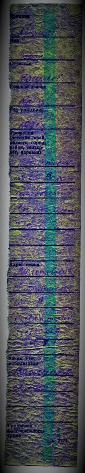 Каштанка Опубликовано 7 августа, 2018 Опубликовано 7 августа, 2018 Из ВК Все Березники пост Серафимы Труновой Внимание, поиск родственников! Красноармеец КУЗНЕЦОВ ИВАН ВАСИЛЬЕВИЧ, 1921г.р. Уроженец: Молотовская обл., Ворошиловский р-н Адрес семьи: Молотовская обл., Ворошиловский р-н, Дедюхинский лесозавод. Призван Ворошиловским РВК. Останки бойца были обнаружены поисковиками ОПО "Святой Георгий" на Невском Пятачке (Кировский р-н Ленинградской обл). Имя удалось установить по найденному при нем солдатскому медальону с запиской. Контактные данные https://vk.com/id169476159