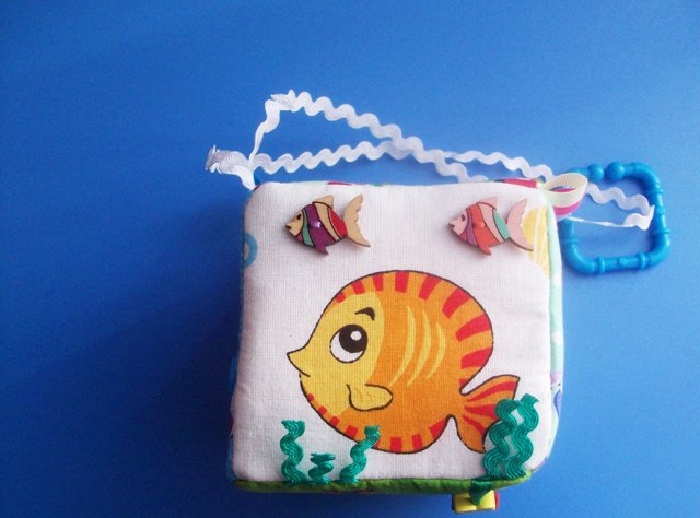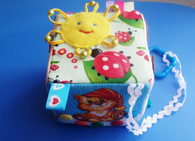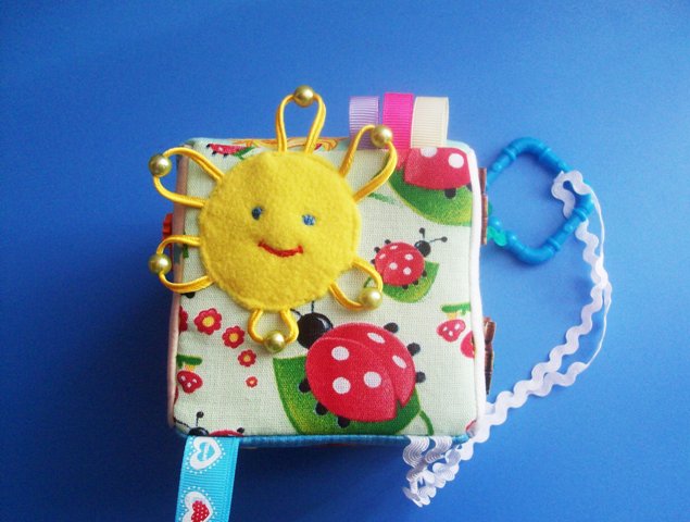 ТИНА Опубликовано 12 июня, 2016 Опубликовано 12 июня, 2016 Продам новый сенсорный мячик. Ручная работа. Цена 450 рублей. Возможна доставка в черте города Березники. Сенсорный мячик - яркая, развивающая игрушка для самых маленьких. С большим количеством познавательных подвесок - здесь 30 подвесок: забавные пуговицы, разноцветные ленточки и тесёмки, колечки , шарики для развития тактильных ощущений, доставят Вашему малышу положительные эмоции, позволят развить фантазию и обогатят кругозор через восприятие разнообразных материалов. Внутри игрушки зашита негромкая погремушка. Мячик развивает мелкую моторику и тактильные ощущения ребёнка. Игрушка сшита из качественного 100 % хлопка. Все подвески надежно закреплены внутри. Игрушку можно подвешивать к кроватке или коляске. А так же, это очень удобная игрушка для машины, которая развлечет Вашего малыша в дороге ! Игрушка ориентирована на детей возраста от 3 мес. Грань 5см. Диаметр около 14см. Подвеска на липучке, регулируется по длине. Замечательный развивающий кубик для малыша. Кубик размера 10*10 см, внутри поролон. Сшит из яркого хлопка детской тематики. Кубик можно начать использовать с самого рождения как яркую развивающую игрушку, подвесить над коляской, кроваткой. В дальнейшем можно изучать счет. Стороны кубика: Лошадка (одна пуговка), Рыбка ( две маленьких рыбки), Мышка (три бабочки), Жираф ( четыре жирафа), Киска (пять ярких пуговок), Солнышко (шесть лучиков). Цена 300 рублей.