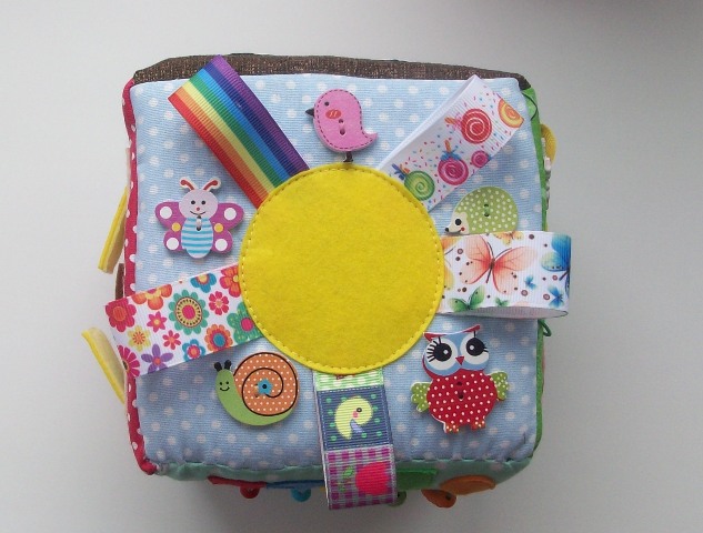 ТИНА Опубликовано 4 августа, 2016 Автор Опубликовано 4 августа, 2016 Потом сшила развивающий мячик и кубик. Сенсорный мячик - яркая, развивающая игрушка для самых маленьких. С большим количеством познавательных подвесок - здесь 30 подвесок: забавные пуговицы, разноцветные ленточки и тесёмки, колечки , шарики для развития тактильных ощущений, доставят Вашему малышу положительные эмоции, позволят развить фантазию и обогатят кругозор через восприятие разнообразных материалов. Внутри игрушки зашита негромкая погремушка. Мячик развивает мелкую моторику и тактильные ощущения ребёнка. Игрушка сшита из качественного 100 % хлопка. Все подвески надежно закреплены внутри. Игрушку можно подвешивать к кроватке или коляске. А так же, это очень удобная игрушка для машины, которая развлечет Вашего малыша в дороге ! Игрушка ориентирована на детей возраста от 3 мес. Грань 5см. Диаметр около 14см. Подвеска на липучке регулируется по длине. Кубик размера 10*10 см, внутри поролон. Сшит из яркого хлопка детской тематики. Кубик можно начать использовать с самого рождения как яркую развивающую игрушку, подвесить над коляской, кроваткой. В дальнейшем можно изучать счет. Стороны кубика: Лошадка (одна пуговка), Рыбка ( две маленьких рыбки), Мышка (три бабочки), Жираф ( четыре жирафа), Киска (пять ярких пуговок), Солнышко (шесть лучиков).