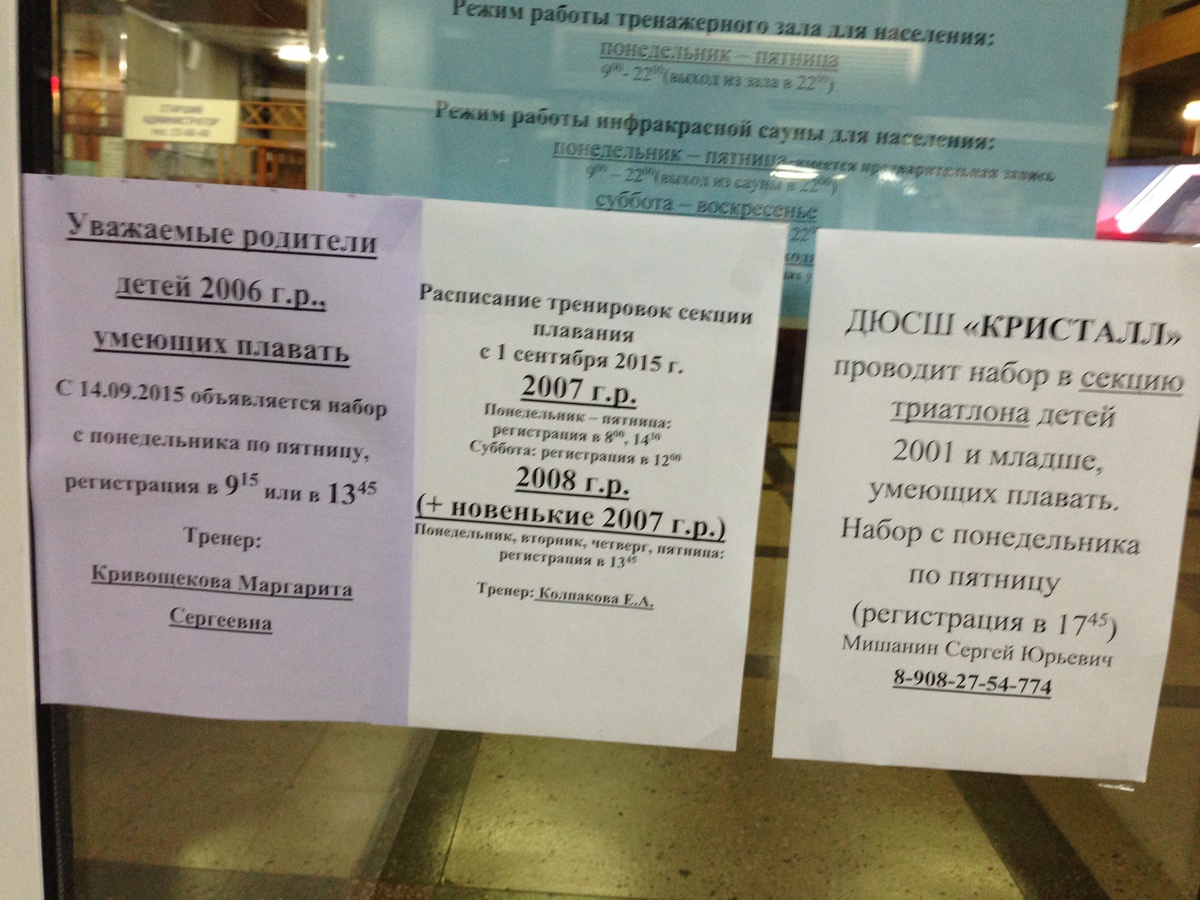 Paradox Опубликовано 15 сентября, 2015 Опубликовано 15 сентября, 2015 интересует возраст 2,6 и 5-6 лет В "Кристалле" секции для детей постарше: С ребенком 2,6 лет можно в маленькую ванну. Погляжу что там с расписанием занятий при следующем посещении.