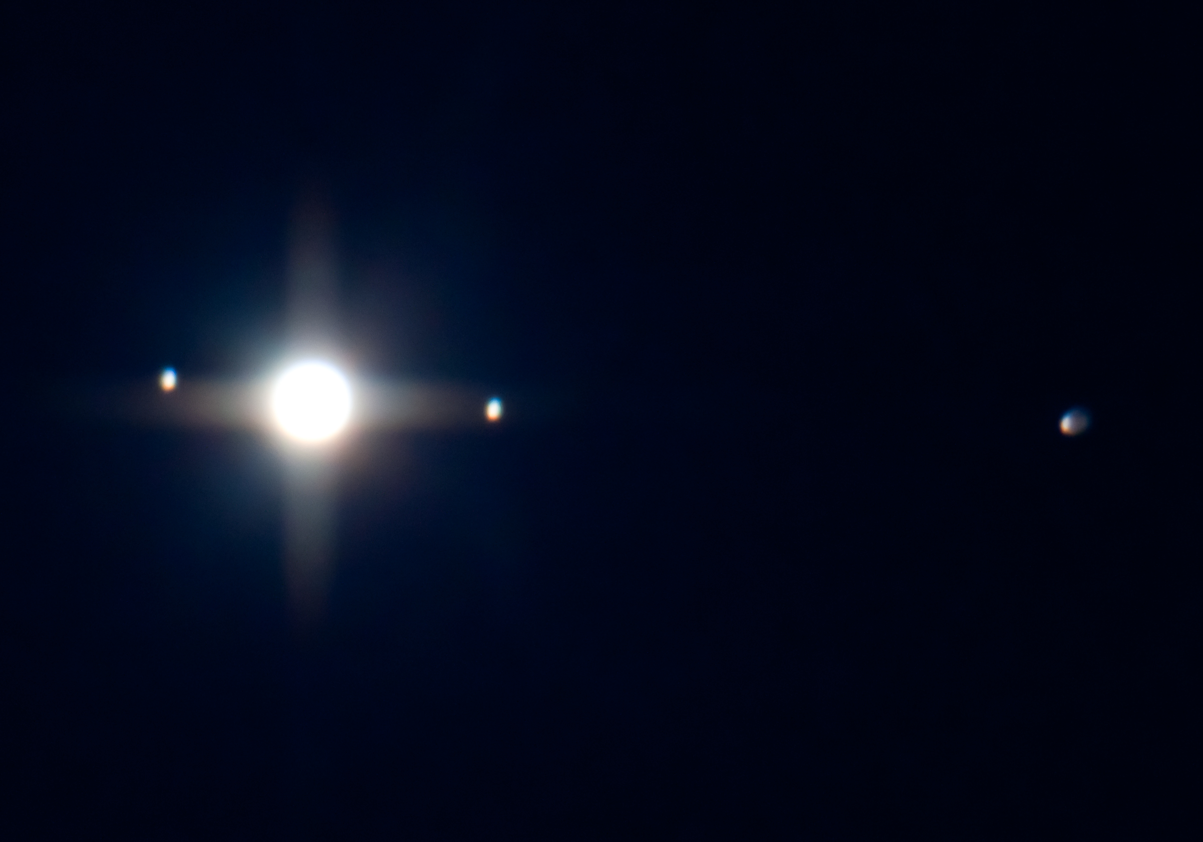 Fomalhaut Опубликовано 19 июля, 2011 Автор Опубликовано 19 июля, 2011 Всем доброй ночи.. или уже утра.. Новый астрономический сезон объявляется открытым! Ибо ждать полного ухода белых ночей нет больше сил.. Собственно из-за достаточно светлого неба план на сегодняшнюю ночь выполнен лишь процентов на 20. Хотелось найти пару новых (для меня) галактик, всё ту же Андромеду и несколько туманностей. Правда искать тусклые объекты на светлом небе, да ещё без ориентиров-звёзд, оказалось невозможным - нужны действительно тёмные ночи. Дальше по списку был Юпитер - этим зрелищем насладились вдоволь :dada: Хотелось дождаться Марс, но в назначенное время на рассветном небе конечно ничего не нашли.. А пока что... Юпитер - полосатик. Со временем буду добиваться большей детальности, Большой глаз это позволяет.. а вот опыта мало. ИСО100, выдержка 1/10. Снято через линзу Барлоу и разгонную втулку А здесь ИСО 800 и выдержка 5 секунд, чтобы спутники проявились, хотя в окуляр их прекрасно видно. Слева направо: Европа, Ганимед, Ио... А Каллисто осталась ещё правее и в кадр уже не влезла. Ну и Луна напоследок, точнее кусочки: :cr: