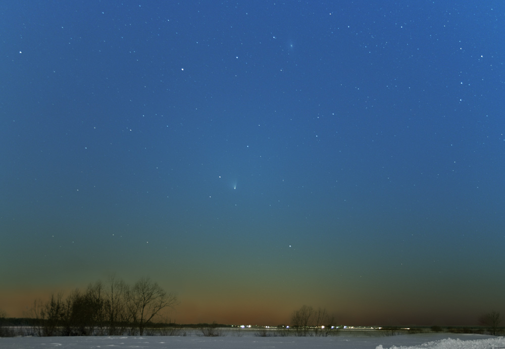Fomalhaut Опубликовано 1 апреля, 2013 Автор Опубликовано 1 апреля, 2013 "Мы лёгких путей не ищем") я про деревья. Рома, поздравляю с долгожданной добычей! А как обнаружил? Глазом, биноклем или на фотках? Спасибо :) Обнаружил уже на фото. Визуально она слишком сливается с фоном и сейчас уже тускла. Снимал на Сигму 28-70 с 5-секундной выдержкой и сразу же на фотике просматривал кадр. Искал приблизительно в том месте, где комета должна была быть и почти сразу нашёл это пятнышко со "звёздочкой". Сначала подумал глюк, поднялся на террасу снова сфоткал общий план, снова просмотрел - есть контакт! Сравнение по звёздам сделал уже сегодня утром, на работе - у меня только здесь есть орбита кометы в StarCalc. В идеале её бы с Большого Глаза поснимать. Для этого мне придётся "ждать" комету в просвете между деревьями. 4 апреля она близко подойдёт к галактике Андромеды... но деревья.. эх. Ах, да - и погода конечно :ag: "Мы лёгких путей не ищем") я про деревья Ага, они как раз закрывают обзор от юго-запада и вплоть до самого дома :) В тот вечер не смог бежать до открытых мест, так что пришлось снимать прямо сквозь ветви. Возможно с этой поляны будет лучший обзор.