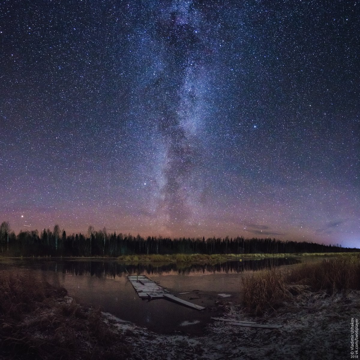Fomalhaut Опубликовано 16 сентября, 2018 Автор Опубликовано 16 сентября, 2018 Что-то как-то спонтанно решил поиграть в туриста - ночь, рюкзак, палатка, костёр, гитара, Булонский лес.. Огурдинский бор :) Даже не надеялся на такое небо... Но это было что-то! Никакими словами и фотографиями не передать... просто бриллиантовые россыпи. Даже блики от костра и засвет от Азотки не мешали чётко и без напряга наблюдать не просто Млечный Путь, а даже такие объекты, как галактика в Андромеде и Хи Аш Персея. Их даже искать не надо было - сияли вполне различимо даже прямым взглядом! Млечный Путь над Азоткой. Линзы очень быстро запотевали... Марс прямо над горизонтом.. Почему-то забыл пройти чуть дальше и сфоткать марсианскую дорожку на воде, хотя планировал
