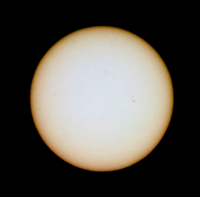 Fomalhaut Опубликовано 19 марта, 2011 Автор Опубликовано 19 марта, 2011 Пока Луна готовится к сегодняшнему выступлению (аншлаг с овациями, думаю ей сегодня обеспечены :wink: ), решил поснимать Солнце... на предмет пятен. Как видно пятно есть, точнее там группа пятен, но более-менее видно одно крупное. Сравнил с картинкой с сайта http://www.tesis.lebedev.ru/active_areas.html Вроде сходится.. в фотошопе совпало точно. В качестве светофильтра - куски двд-болванки и зашкаленные настройки выдержки и диафрагмы. Это конечно не дело, но пока плёнки AstroSolar у меня нет.