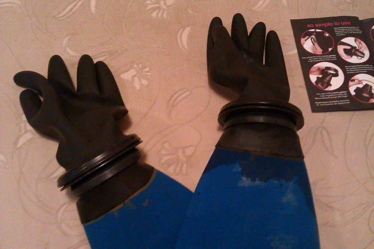 Zaxap Опубликовано 7 января, 2014 Автор Опубликовано 7 января, 2014 Имплантировал сухие перчатки. Процесс до безобразия прост, единственная недосказанность по внутреннему кольцу, которое в манжету вставляется, оно имеет разные буртики и как правильно ставить не совсем понятно из инструкции. Вот изначальный комплект, костюм и набор колец. Вставляем внутреннее кольцо. Затем наружное. Примеряем. И с перчаткой... В итоге получилось так: Не дает покоя вопрос резать манжету или нет на фото видно три риски на манжете, может по крайней от рукава риске отпластнуть? Ну очень неудобно одевать, шибко тугие. "Спорное" кольцо. Широким буртиком разместил в торону костюма. Гидростатические испытания в тазике подтвердили герметичность. Только сами перчатки надо поменять, 12-ый размер уж очень велик, вполне 10-ки хватит. ЗЫ. Фоткал на ласту. :)