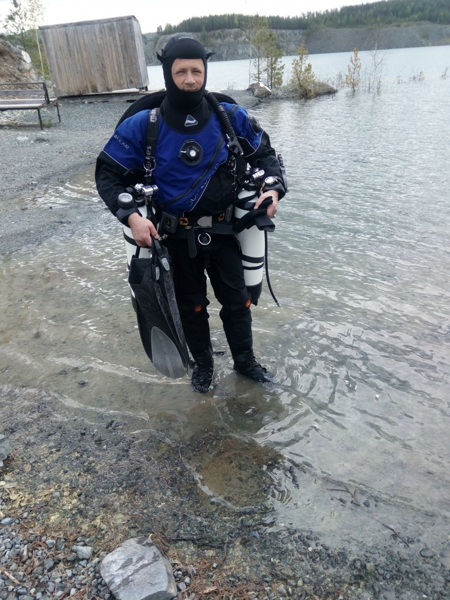 Sergic Опубликовано 30 мая, 2019 Опубликовано 30 мая, 2019 Здравствуйте, други и сочувствующие! Хочу рассказать, как съездил на нырялку на карьеры под Н. Тагилом. Само действо происходило с 22 по 26-е мая. Выехал рано утром в среду с другом и сыном (он направлялся в Ёбург). Снаряжка и прочее было загружено накануне. Приключения обозначили себя практически сразу. Где-то после Яйвы загудел подшипник на движке моей Санты. После небольшого осмотра решил, что это натяжной ролик ремня генератора и помпы и фиг с ним, поехал дальше безмятежно. На выезде из Губахи чуть было не попал под дикошарый длинномер с прицепом, груженым кирпичом, от него же словил кусок кирпича в лобовое. Хорошо, отделался всего лишь сколом. Разойтись смогли только чудом... Заехал на карьеры ("Хургада"), выгрузил товарища со снарягой, двинулся с сыном до Ёбурга. Погода хорошая, светло, красота... Забросил сына в хостел в Ёбурге, вернулся на карьер. Пока то да сё, уже начало темнеть, товарищ не подкачал, палатки, костёр, в общем, бивак был обустроен как полагается. Были мысли устроить ночную нырялку, стал готовить снарягу, и тут- раз! При одевании сухаря расползлась шейная манжета! Горе моё было не описать- вода у ног, баллоны забиты, ныряй- не хочу, а в воду залезть нельзя, сразу затечёшь! Подумав немного принял решение просить прокатный костюм на Лазурке, благо недалеко. Ночью было прохладно, но не слишком, не замёрзли. Сразу сутреца начал названивать распорядителю Александру от клуба "Дайв-Эксперт" насчёт костюма и повезло, костюм нашёлся, точно такой же как мой. Съездил, забрал, оставил в залог паспорт и вот они, желанные глубины! Сделал две нырялки, товарищ занырнул разок, вечером за коньяком у костра хорошо и душевно посидели... Утром отправился за нашим водолазным гуру Александром Жилякоым, с которым была договорённость, что я его заберу из Ёбурга, ибо он безлошадный. Поехал к нему в Ёбург и добрался нормально, хотя погода была серенькая и временами накрапывал дождик. Подъехав к зданию бассейна для погрузки приготовленного дайверского скарба, было очень даже немало, получил очень неприятный сюрприз- машина наотрез отказалась заводиться, стартер едва прокручивал с дикой натугой ремень. Стало ясно, что без ремонта не обойтись. При осмотре быстро выяснилось, что шкив генератора не вращается при попытке завестись- то есть генератор заклинил. стало ясно, что за подшипник завывал... Хвала Интернету, найти сервис и эвакуатор большого труда не составило, дольше до сервиса по Ёбургским пробкам добирались. В сервисе приговорили генератор к замене, вместе с работой 12 тыр за неоригинал. Деться-то некуда, отстегнул... Время уже к вечеру, вернулся к бассейну, загрузились, поехали. Добрались до карьера нормально (а я за всеми перипетиями уже не был в этом уверен). Очень классно и душевно посидели у костра... Ныряльный день- пятница. Сходил на Запорожца, икону Николая Угодника (это всё затопленные объекты), полазил по дну, немножко изменил конфигурацию скубы по совету Александра, в общем, день удался. Вечером,как водится, алкодайвинг. В субботу подъехал ещё товарищ, из Кушвы. Приготовили ему снарягу (привезённую из Ёбурга, своей у него, кроме костюма не было), и тут закон подлости сработал ещё раз- на его костюме тоже лопнула шейная манжета. Вот как такое может так кучно происходить? Ладно, был запасной костюм и дай